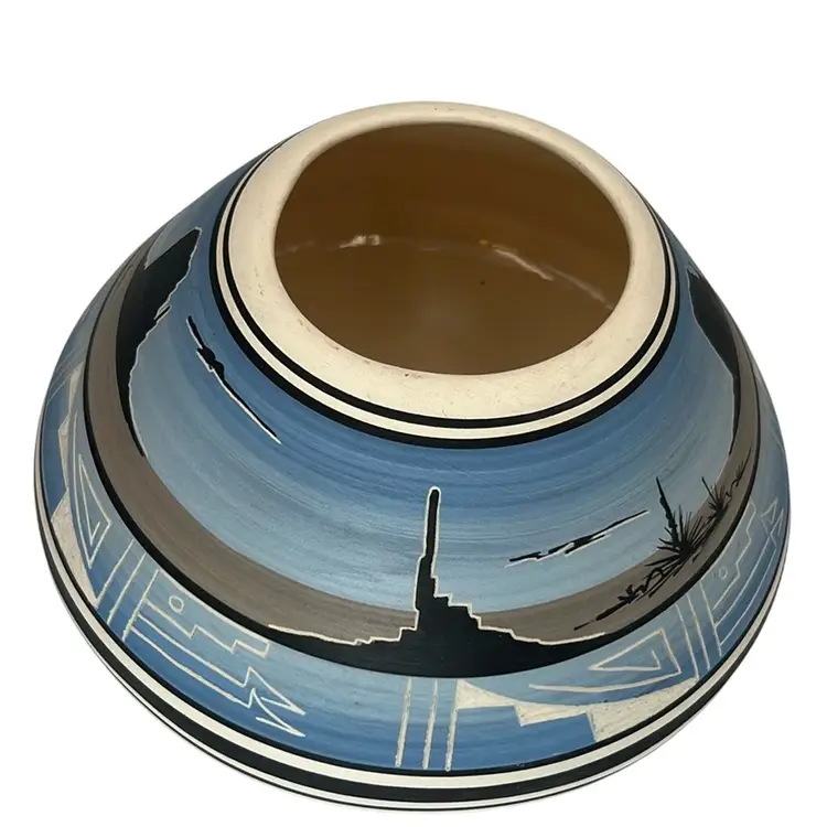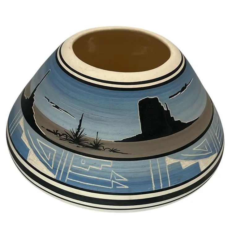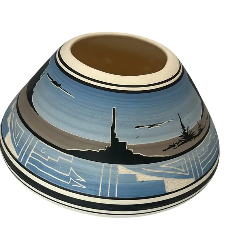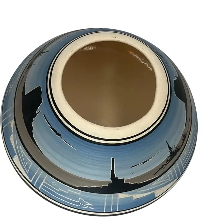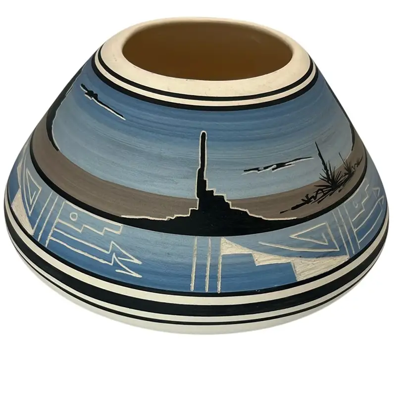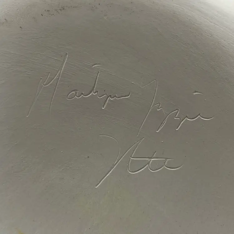 Blue, black and tan hand painted Ute design. No damage, some vintage aging. See photos. Signed Marilyn Yazzi “Ute”