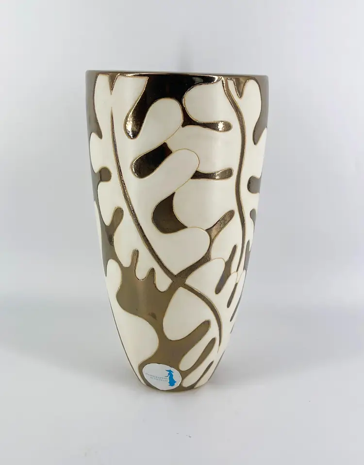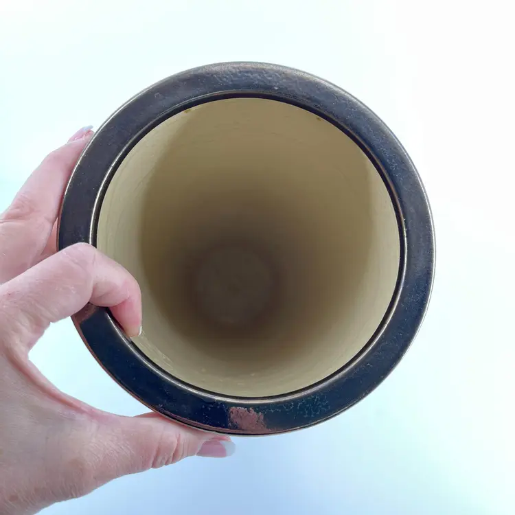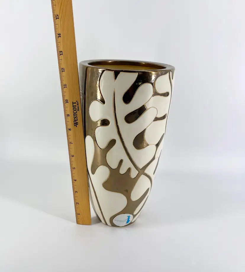It is 12" tall and measures 6.5" in diameter. It is in excellent condition. There are no cracks, breaks, chis or repairs. (See photos).