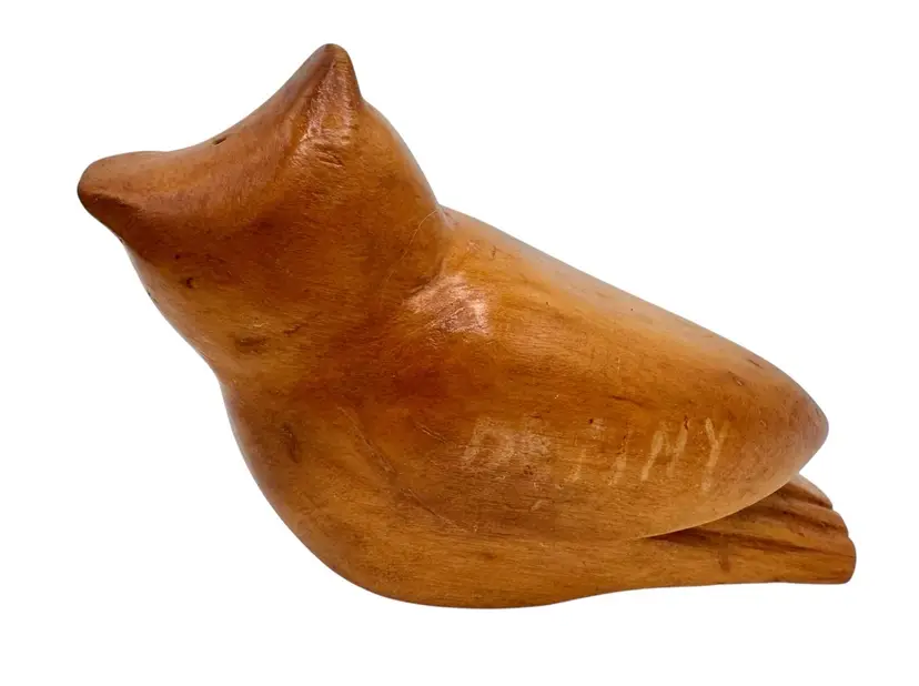 Wood owl figurine signed ‘Denny’ or ‘Danny’.