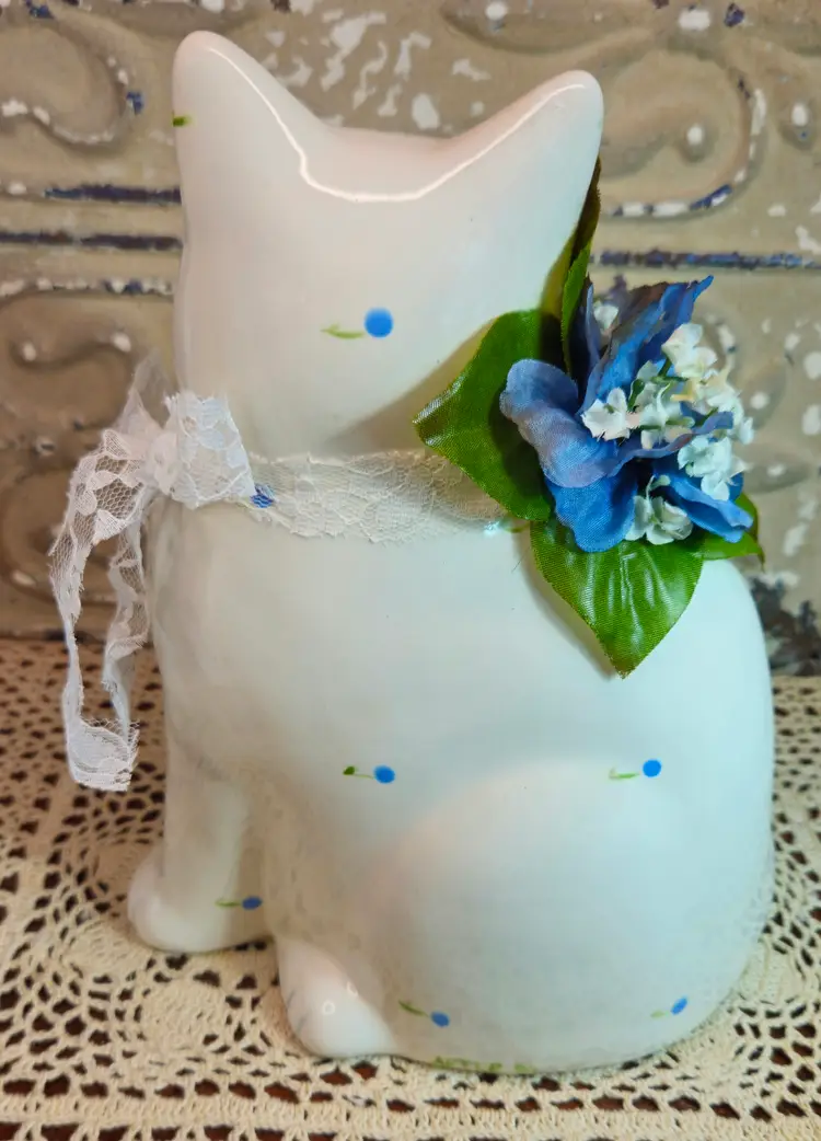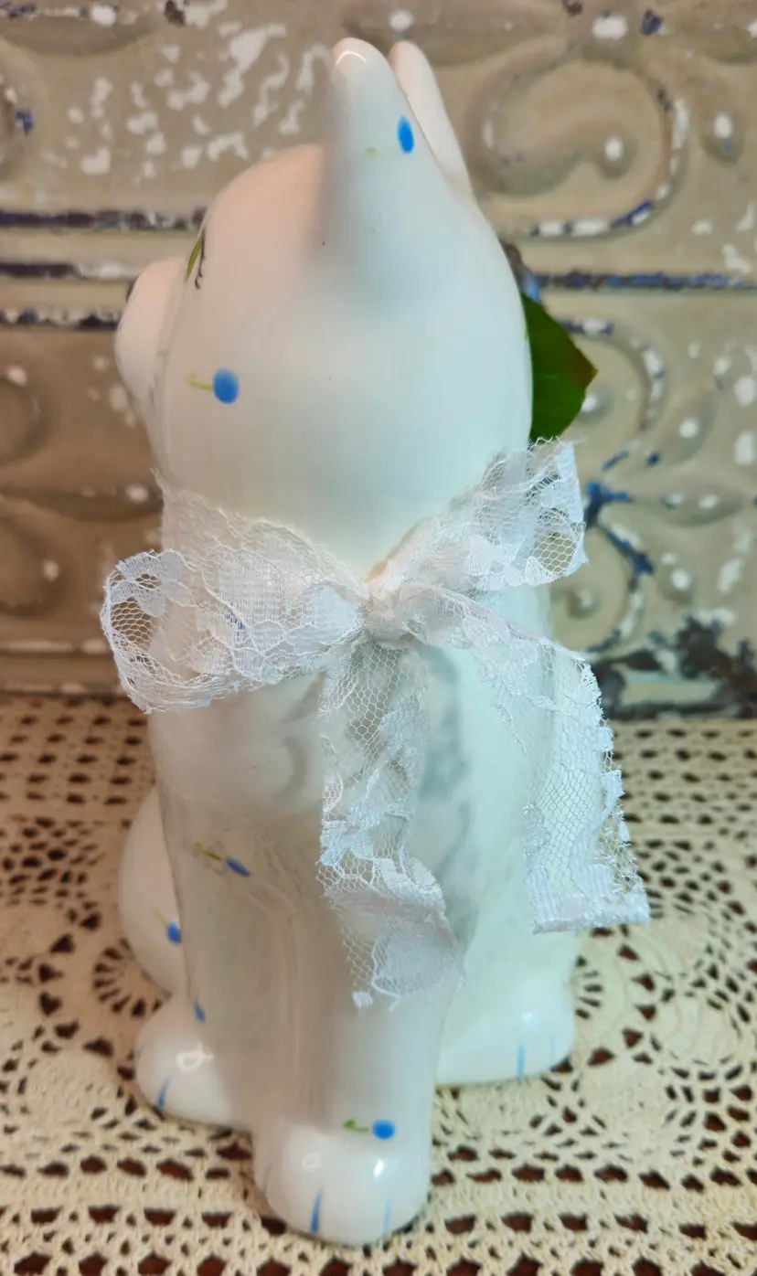 This adorable cat figurine is in excellent, used condition, with no appreciable chips, scratches or cracks. Measurements are depicted in the pictures of the item or listed in the description of the item. Please review the photos, as they are part of the item description. Photos will always reveal noticeable defects, as will my description. Any white “blemishes” that are not pointed out in this section are from the lighting that I use for my photos. If you need clarification, please reach out to me.