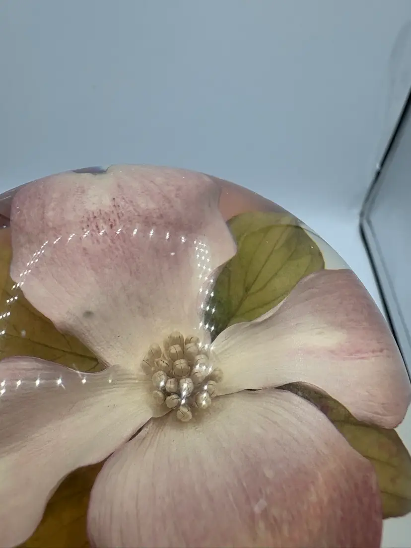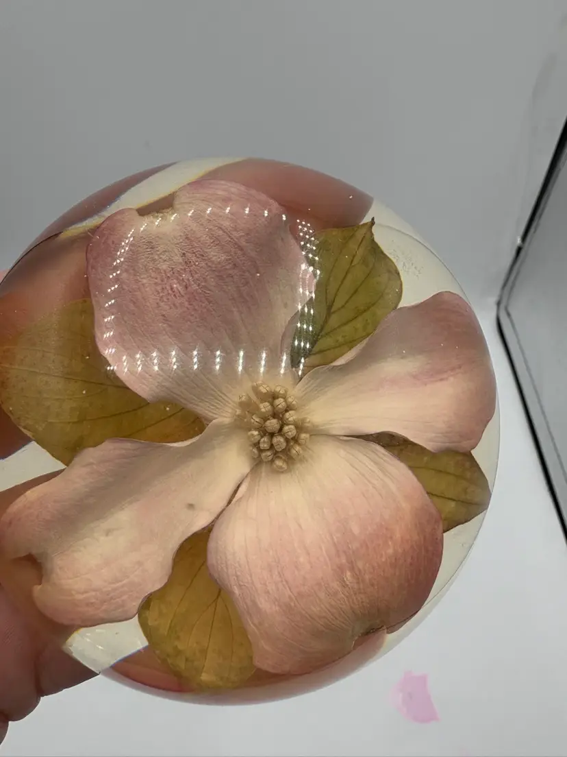 Scratched base and scuff mark on top (see photos). Acrylic is yellowed with age