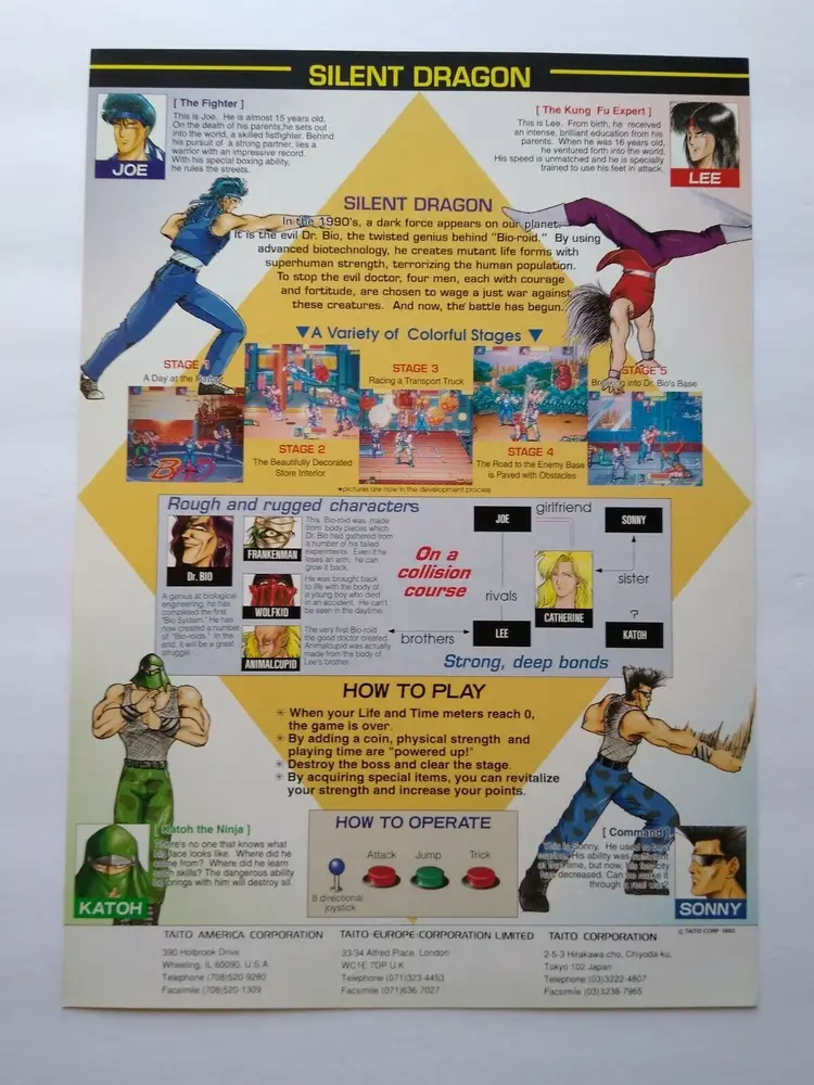 Material: Paper Arcade: Flyer Modified Item: No Country/Region of Manufacture: Japan Original/Reproduction: Original Year: 1992 Game Title: Silent Dragon Brand: Taito