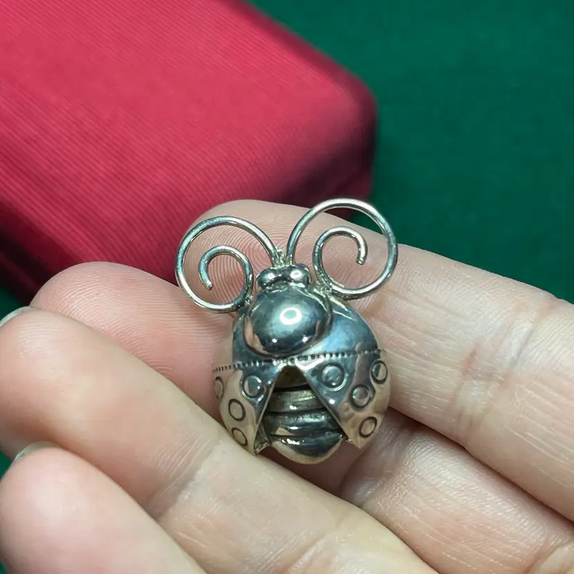 This lovely little lady bug is in good condition. It is tested and marked 925 silver and is just over 1 inch long.