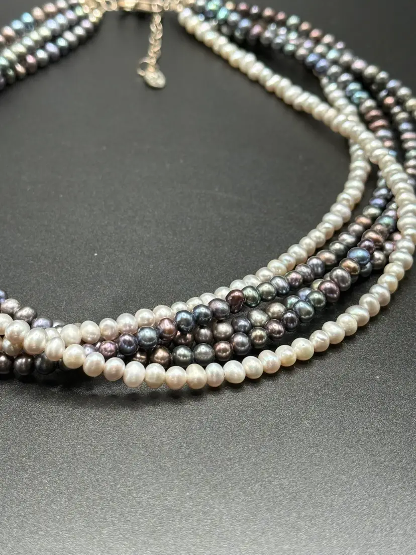 SILPADA Sterling Silver 5 Strand Irridescent Gray Purple Pearl Necklace N1721