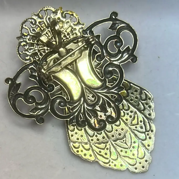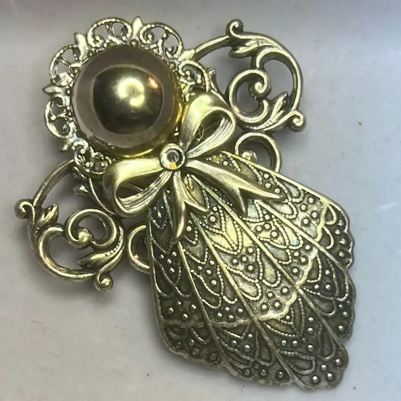 2.5”x 1.75” Silver tone angel brooch with pendant bale Artisan made from upcycled vintage jewelry