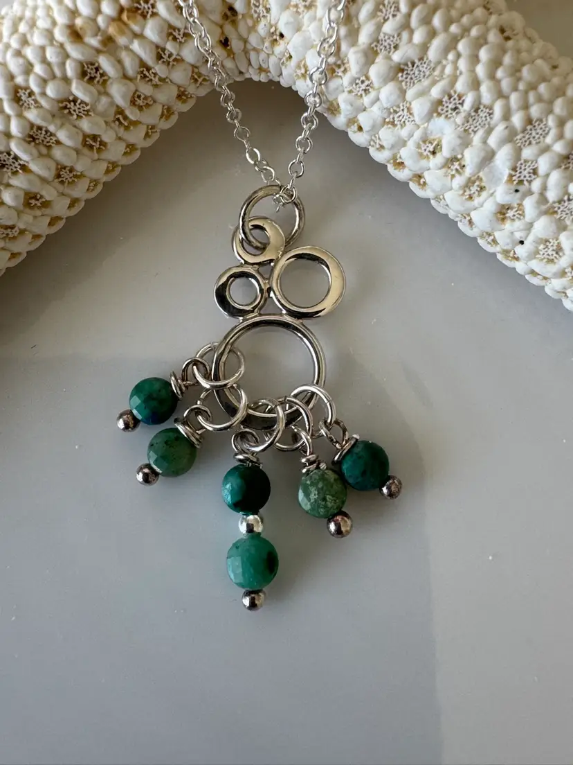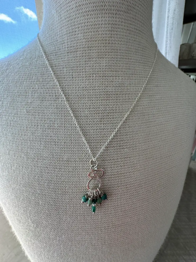 Sterling Silver pendant and chain Chain 18” Chalcedony Dainty Gemstones Hand Wrapped with Sterling Silver Wire