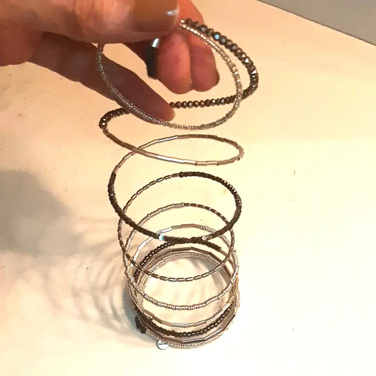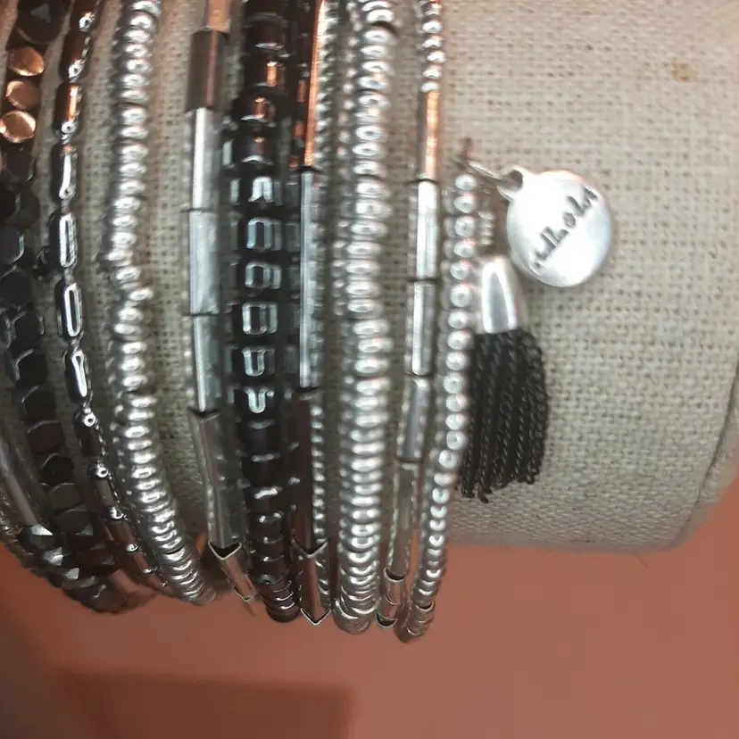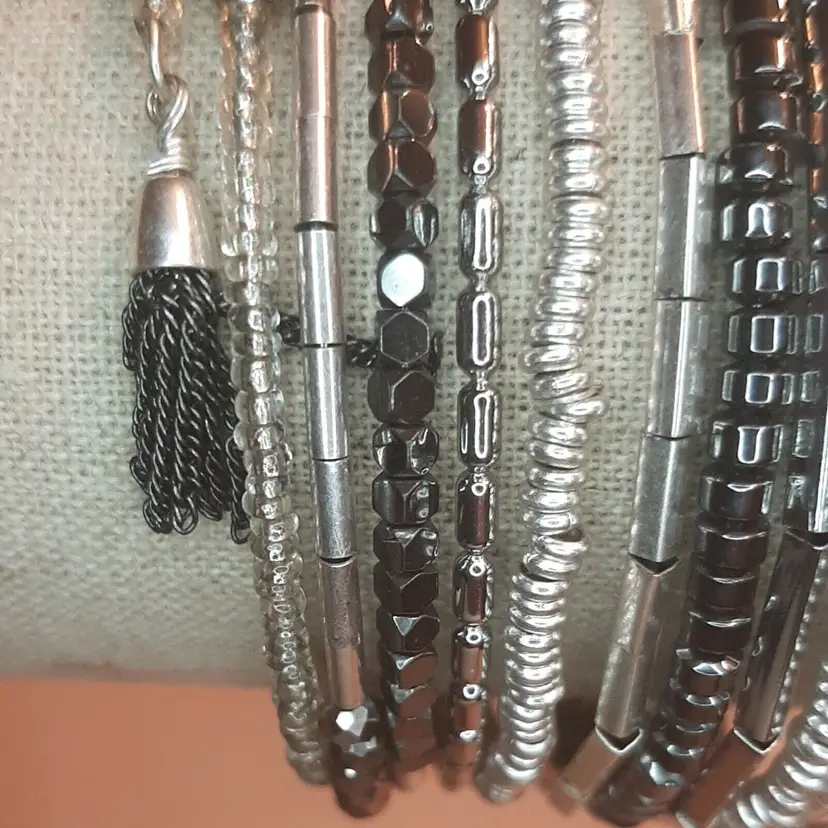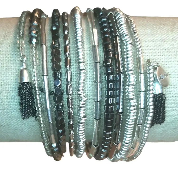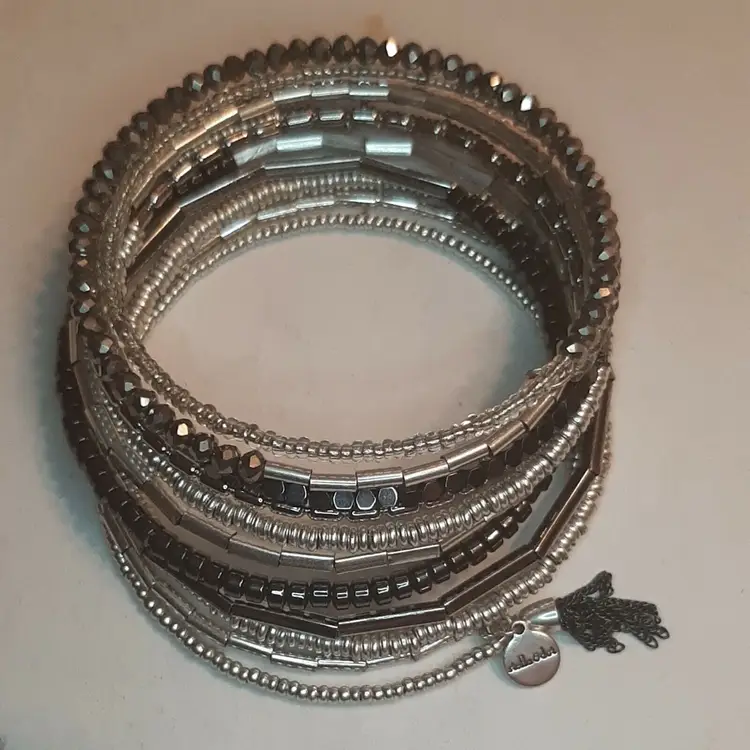 – Main Stone Color: Black – Metal: Silver – Charm Type: Bead – Material: Metal – Shape: Round – Brand: Stella & Dot – Style: Beaded – Color: Silver – Theme: Wrap – Type: Bracelet