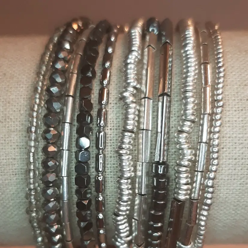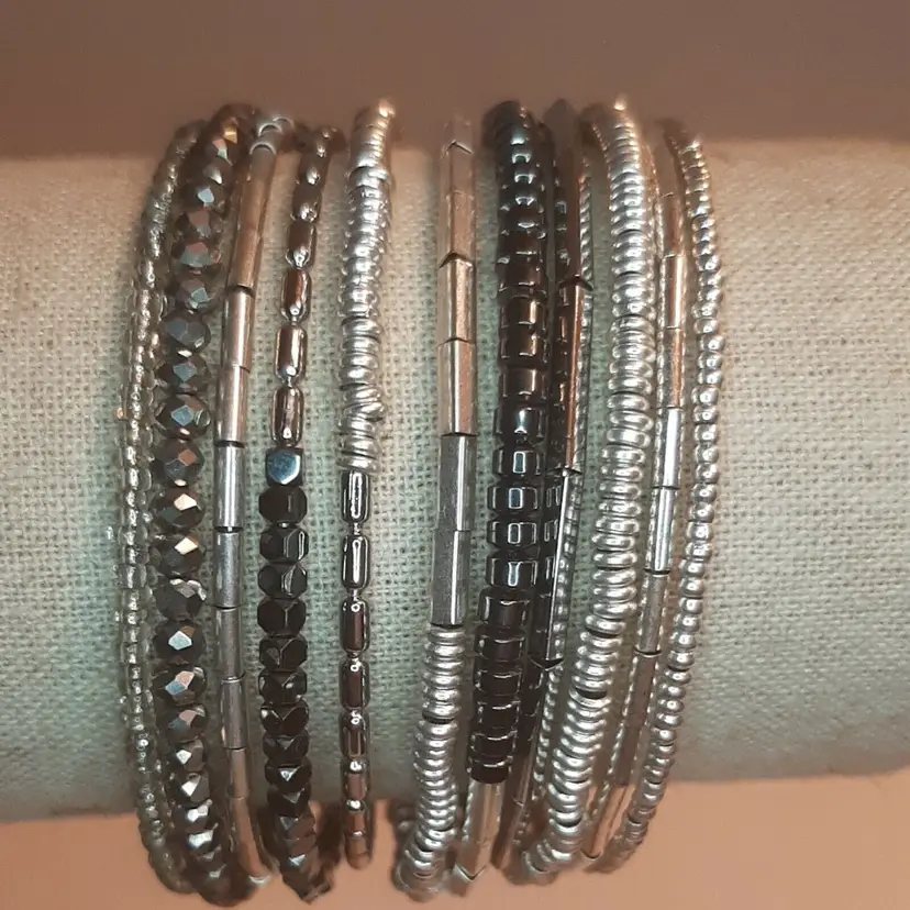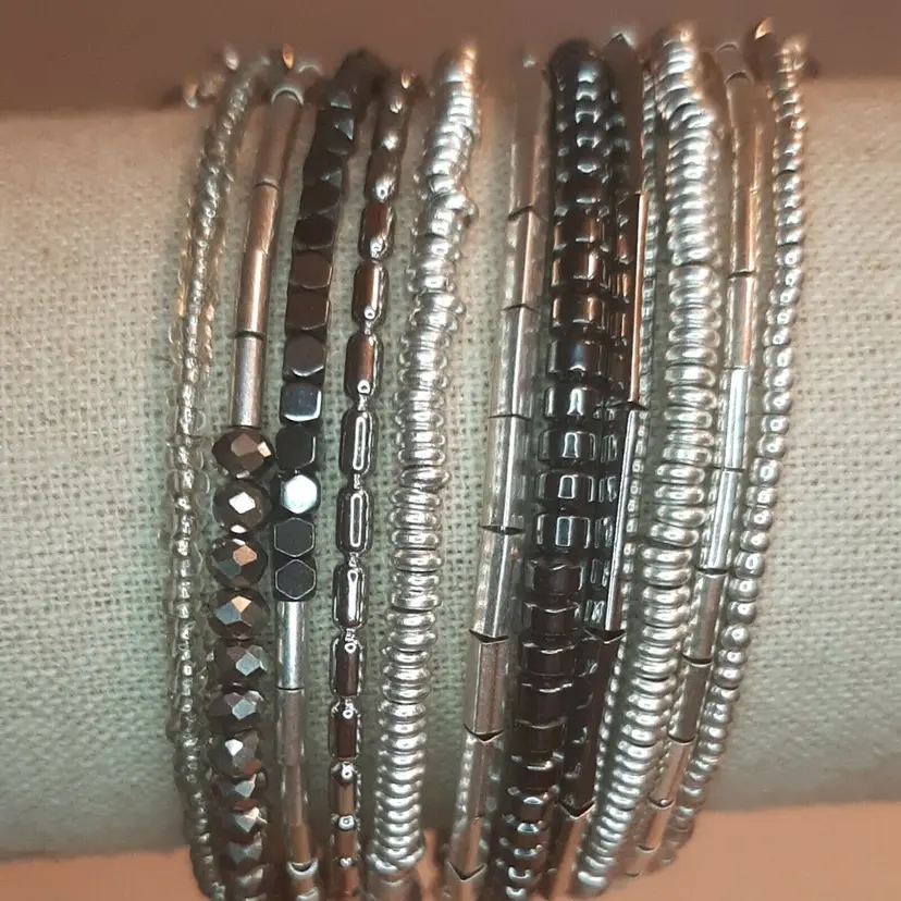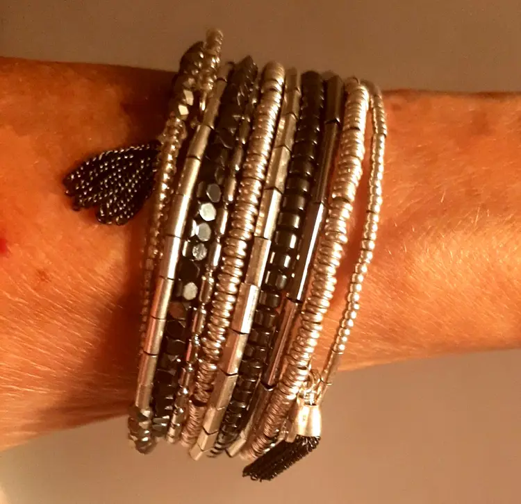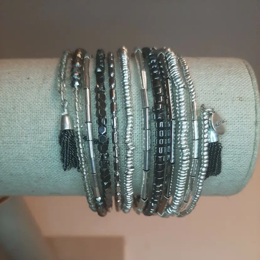 – Main Stone Color: Black – Metal: Silver – Charm Type: Bead – Material: Metal – Shape: Round – Brand: Stella & Dot – Style: Beaded – Color: Silver – Theme: Wrap – Type: Bracelet