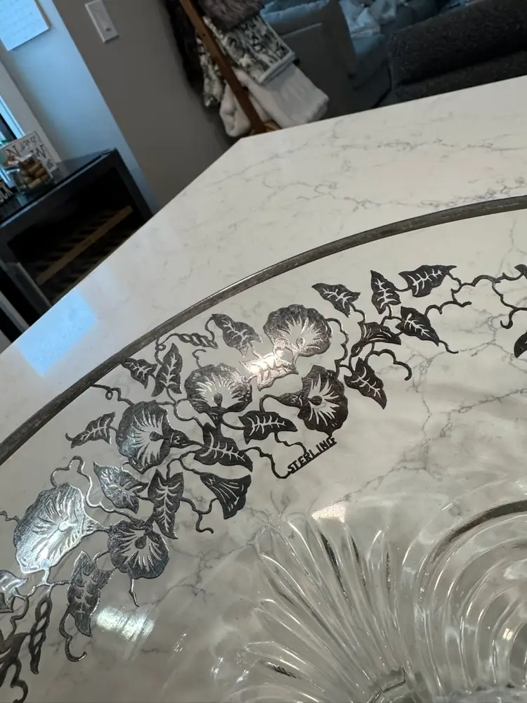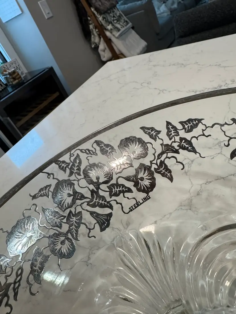 Gorgeous bowl with sterling overlay pattern. Made by Silver City in Connecticut. 1960’s.