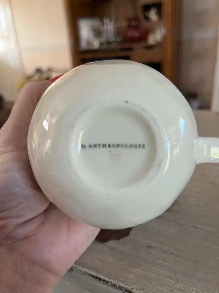 I cannot find anything out about this mug. It’s a bit smaller than other mugs (4.5 x 3.75) but so cute!