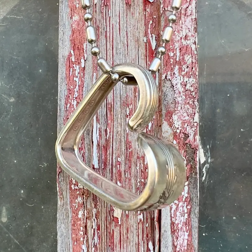 This is made from a spoon handle. You will receive a 30” metal beaded chain which can be cut to your desired length with scissors or wire cutters.