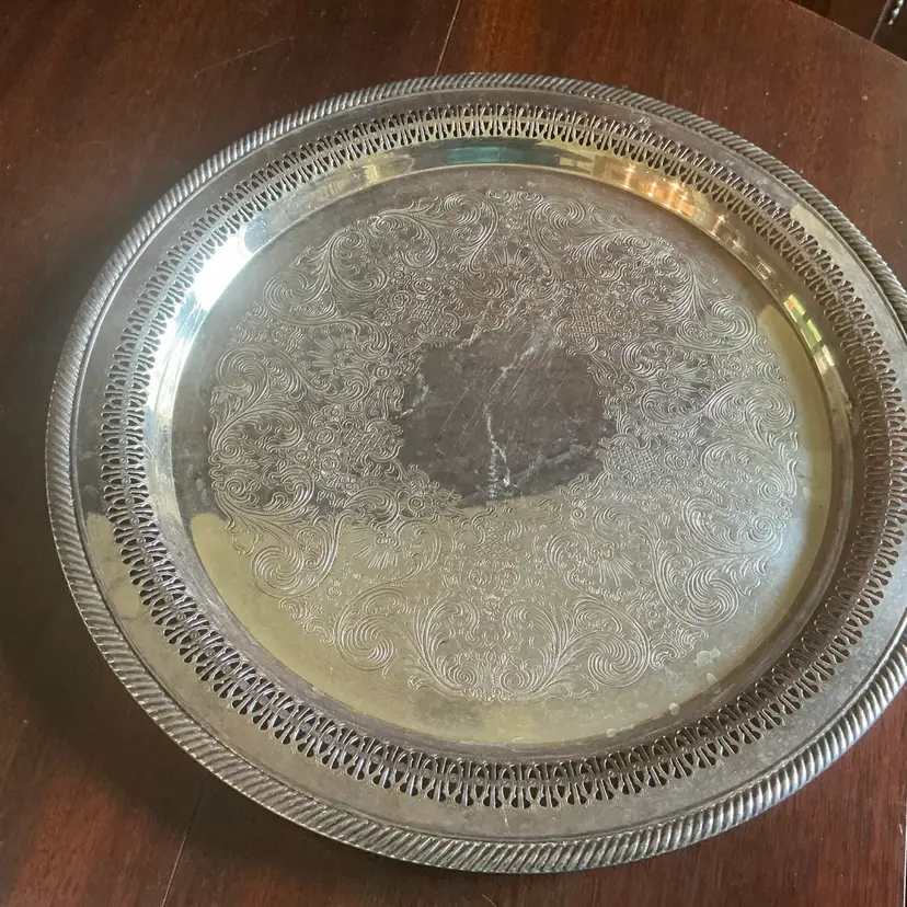 💐Silver Plate Tray Large Round
