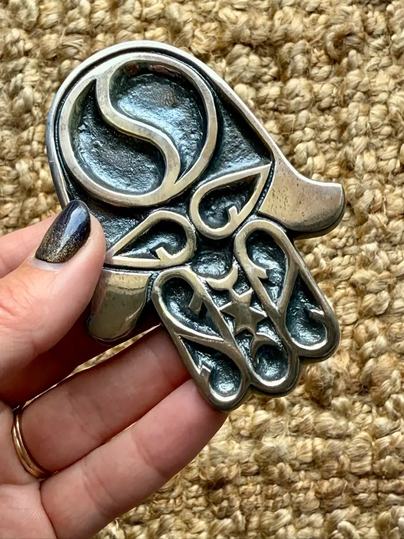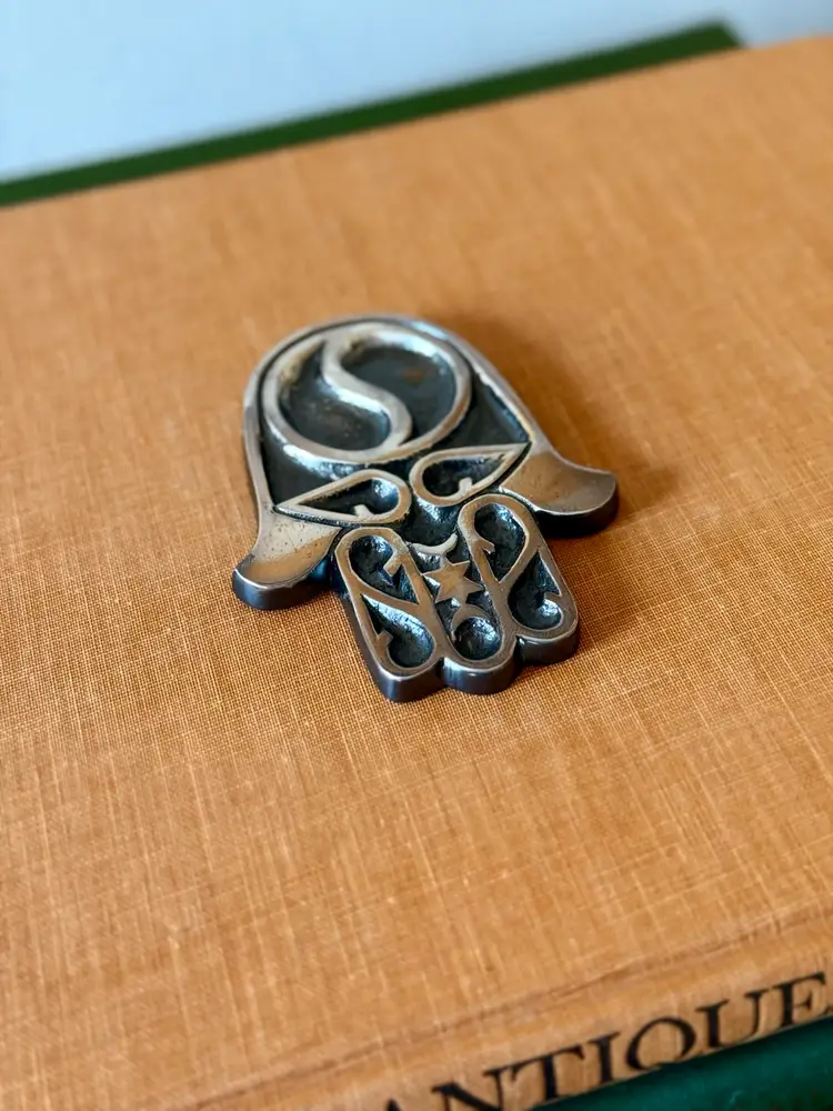 Beautiful as a protective home blessing, Judaica décor, or collectible example of Israeli studio metalwork.