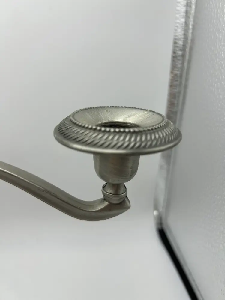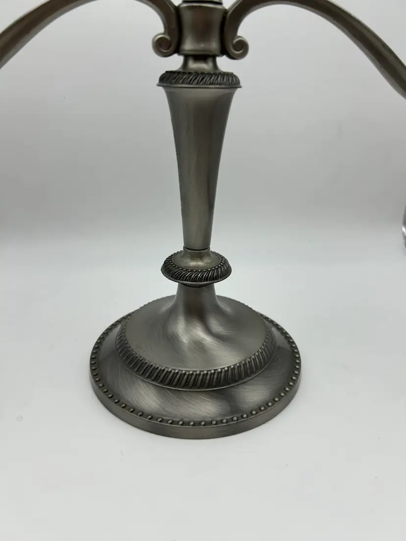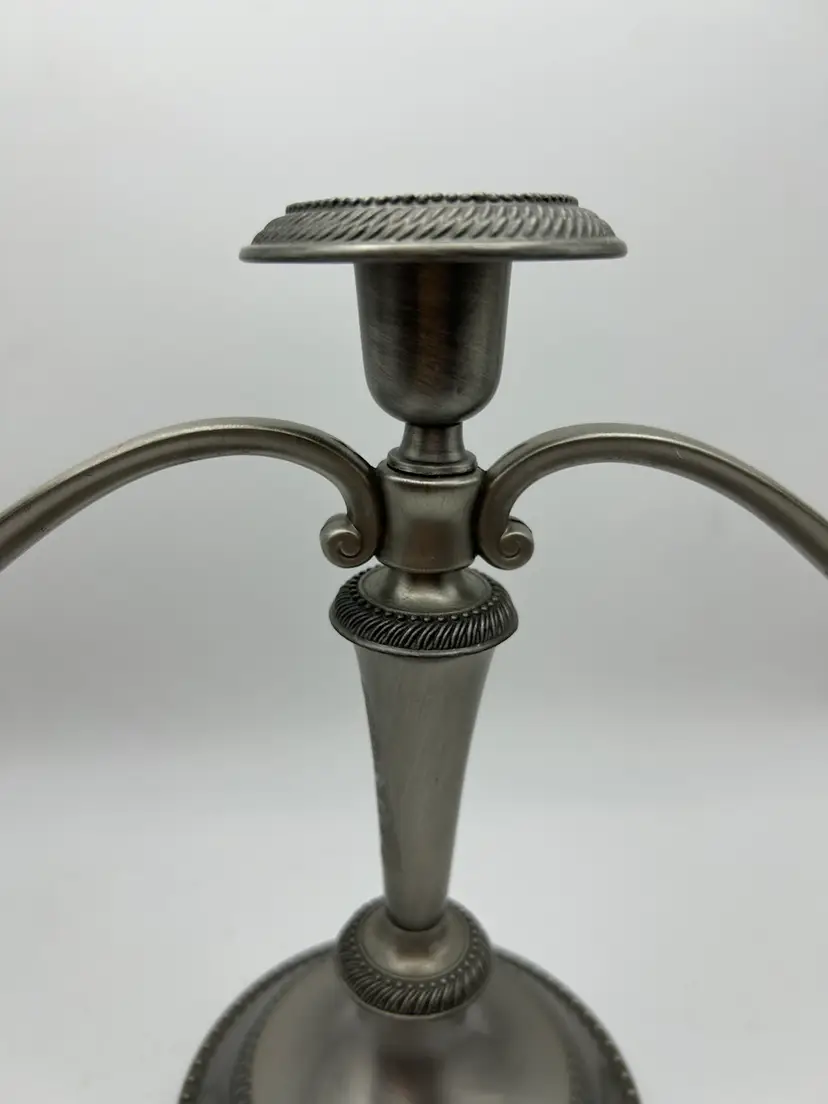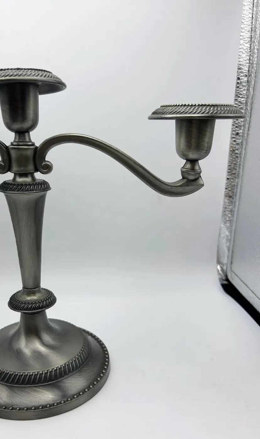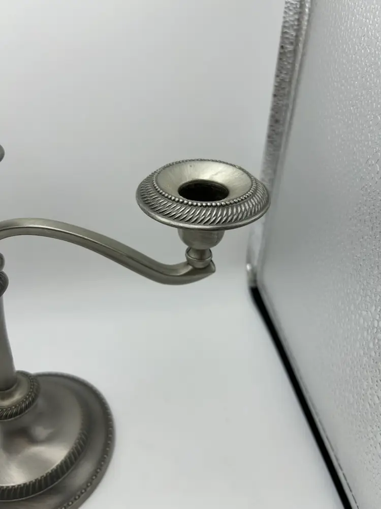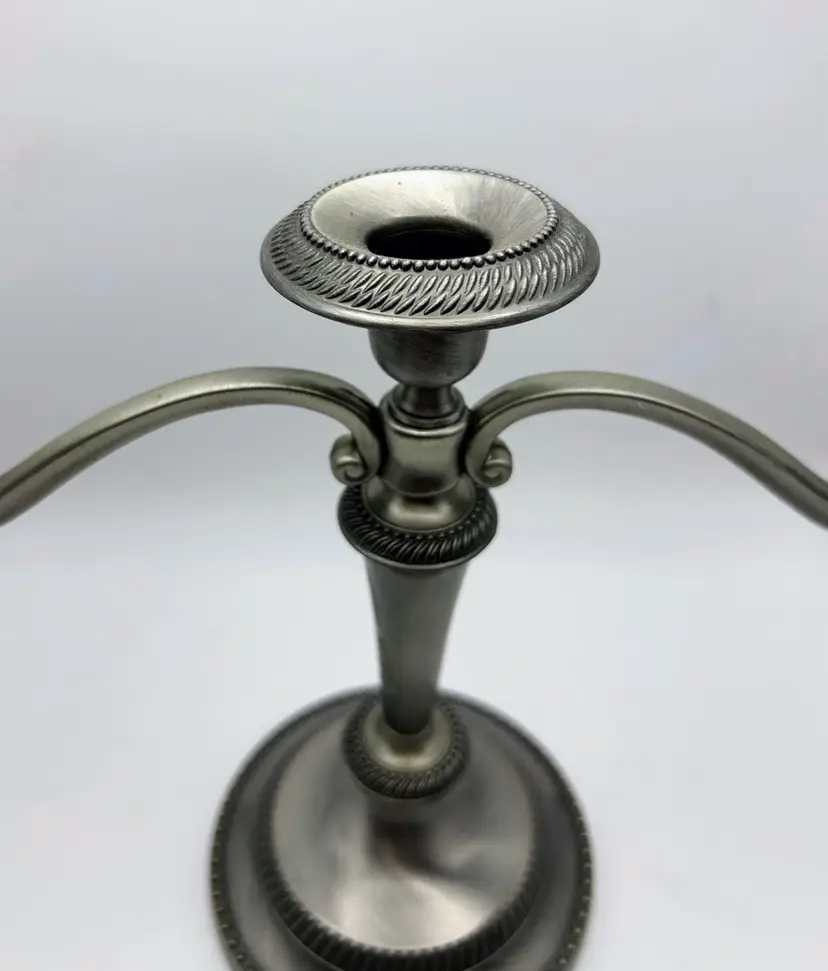 This vintage silver-plated candelabra is perfect for adding a touch of elegance to any room. With its ornate design and three branches, it is suitable for tapered candles and fits in with any decor, whether it's Art Deco, MCM or contemporary. The candelabra is a medium-sized, silver-colored piece that weighs 1 lb 3.8 oz and stands at 8.5 inches tall, with an item width of 11 inches.