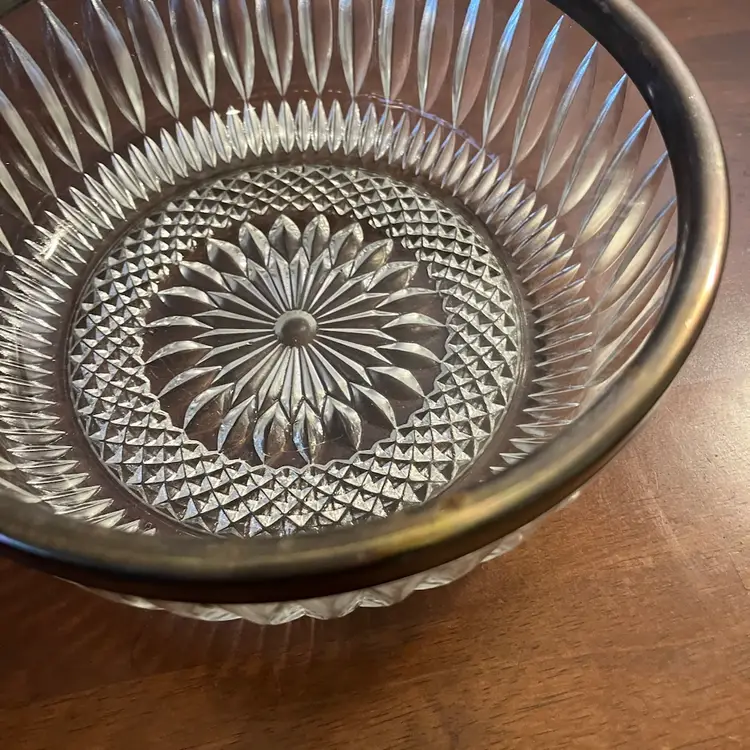 Glassware with silver-plated rims became popular in the late 19th and early 20th centuries, offering a more affordable alternative to solid silver. These pieces often featured intricate glass cutting and decorative metalwork, making them suitable for serving and display.