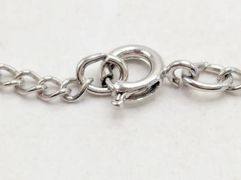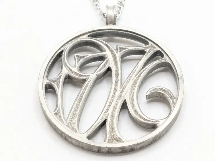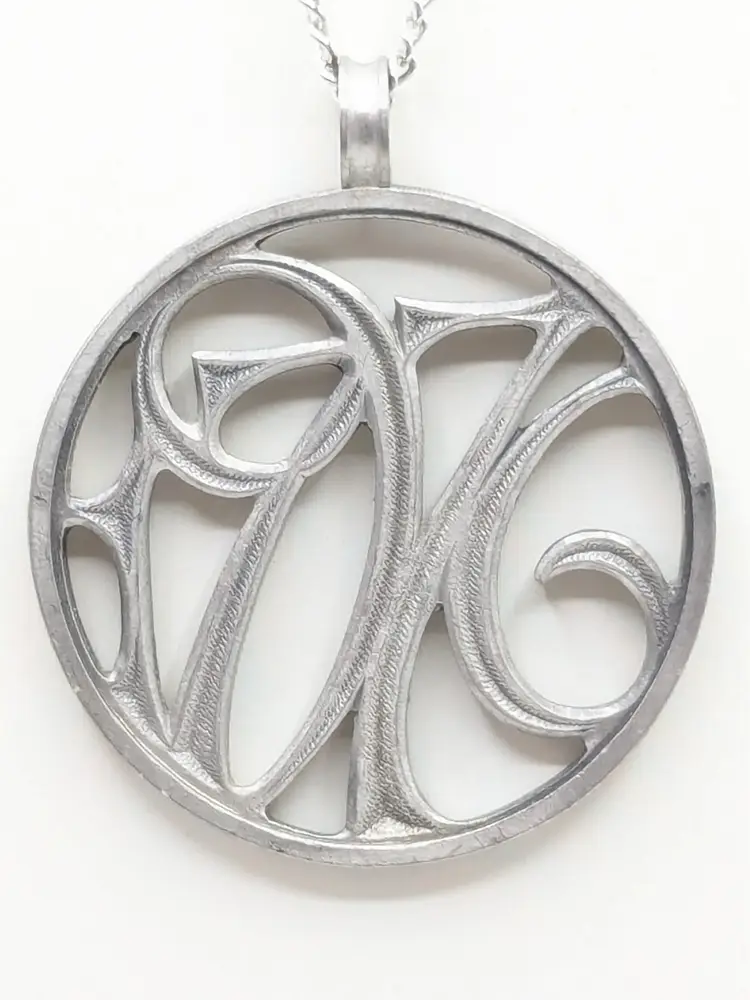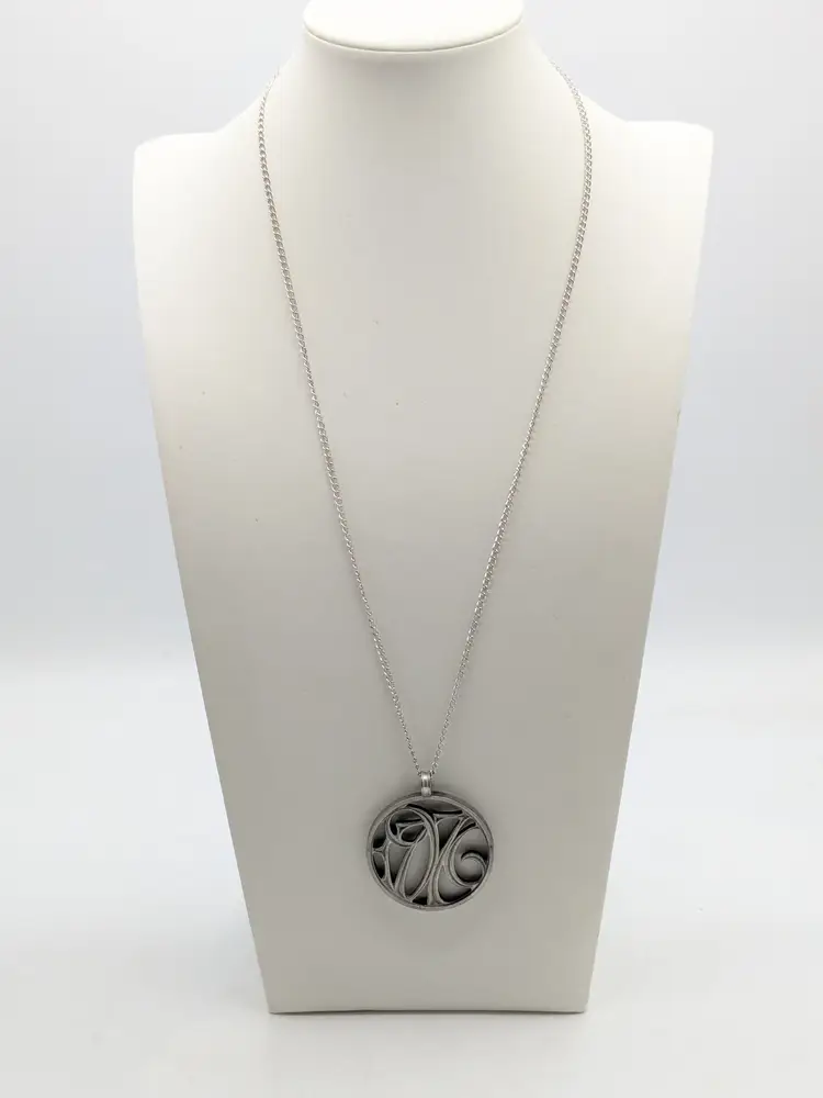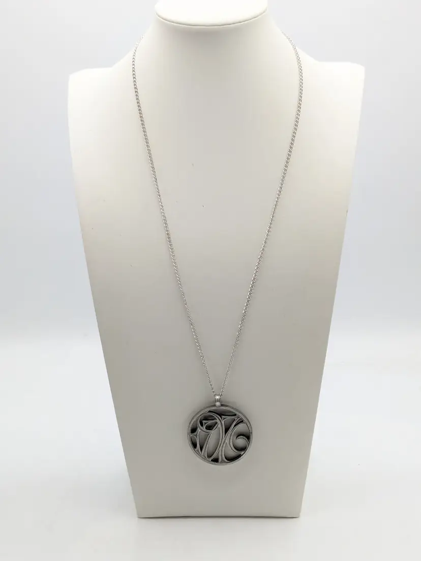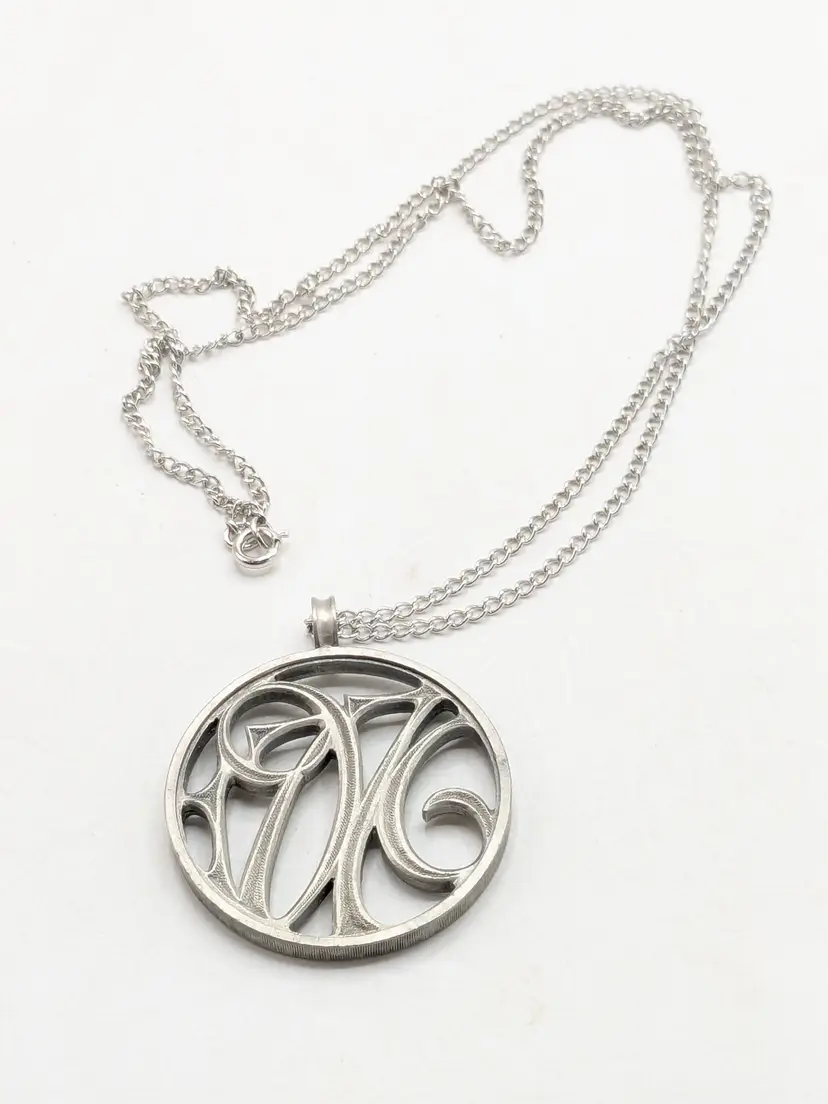 Good condition. Silver tone. Pendant measures 1 5/8" and chain is 24". wen