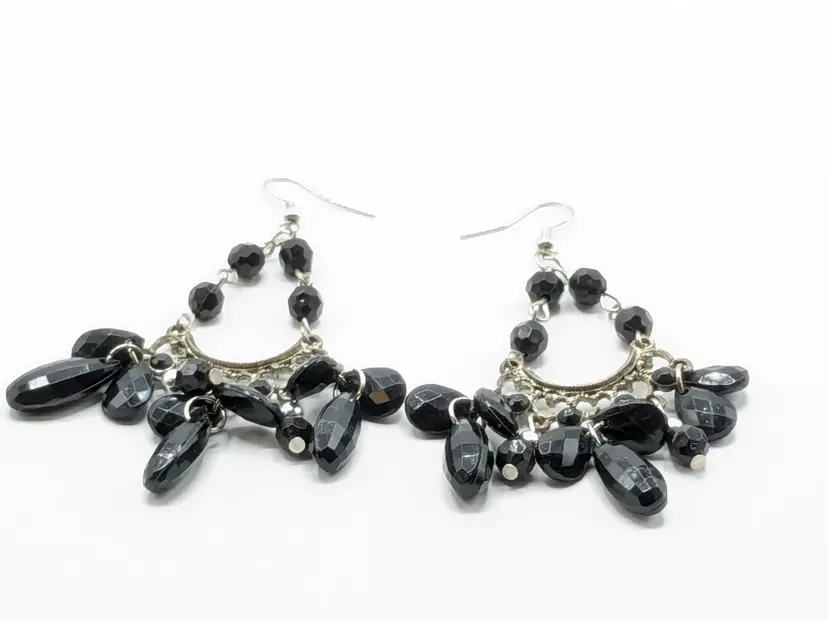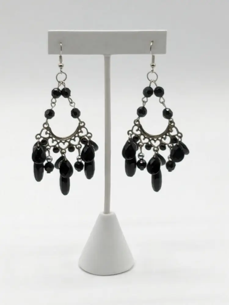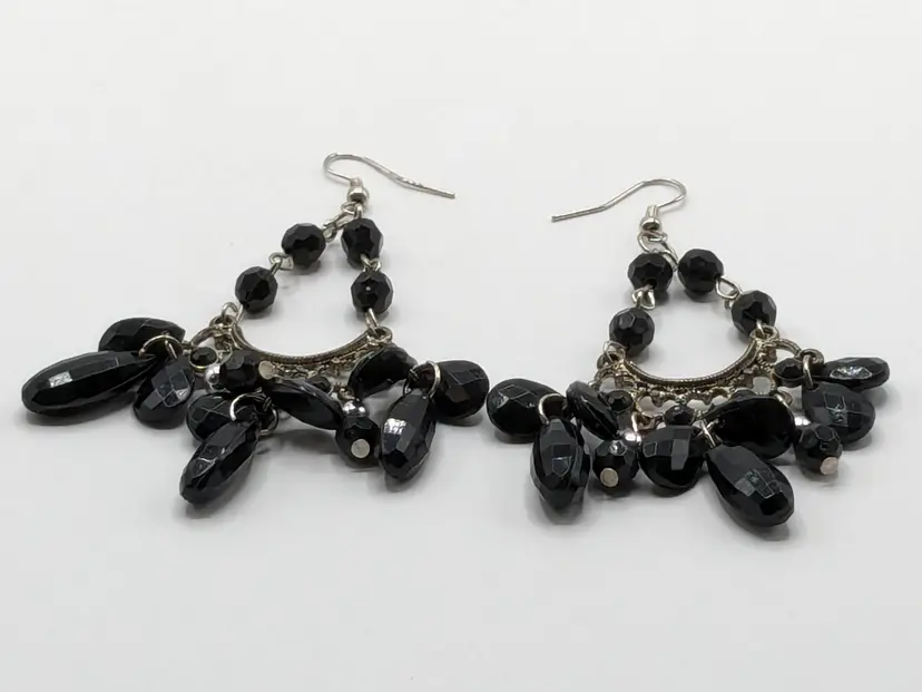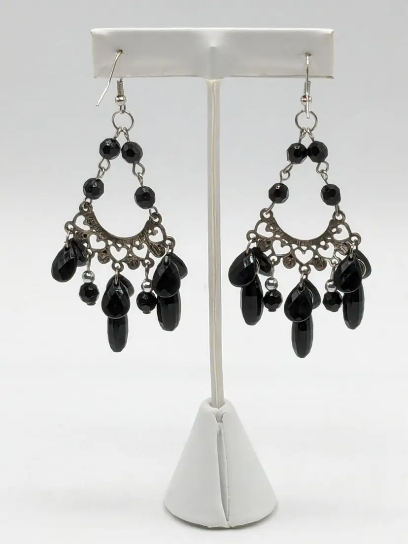 Good condition. Earrings measure 3 1/4" drop from top of hoop.