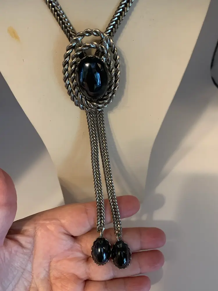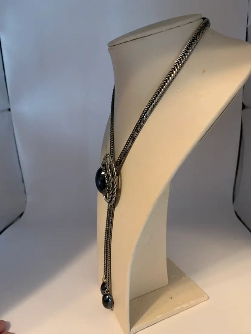 This is a high quality costume piece Measures 24 inches Center pendent is movable up and down