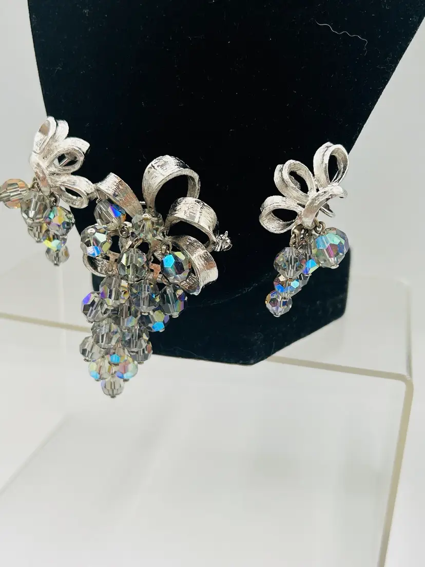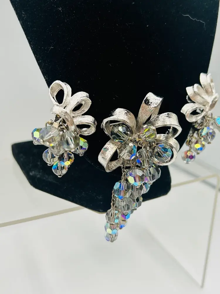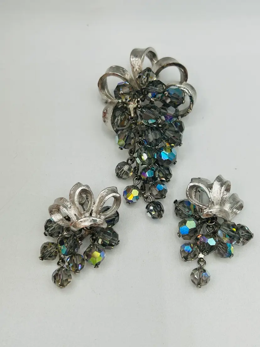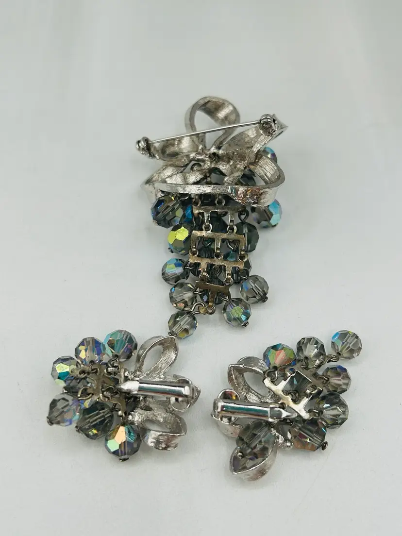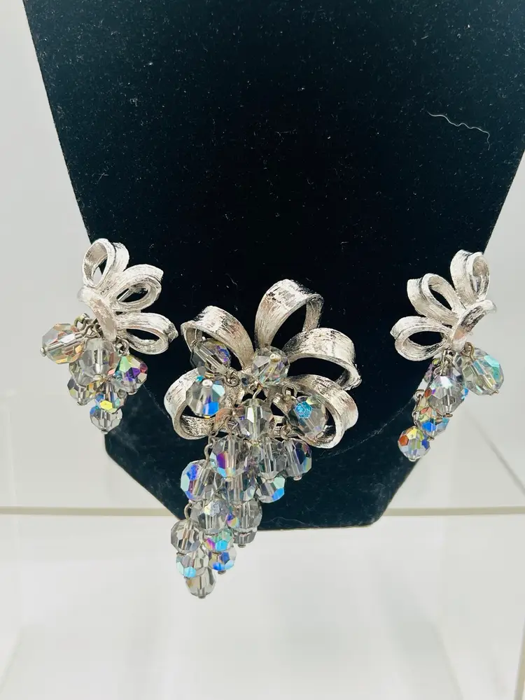 Very good condition, measured Earrings are 1” and brooch 2” unmarked