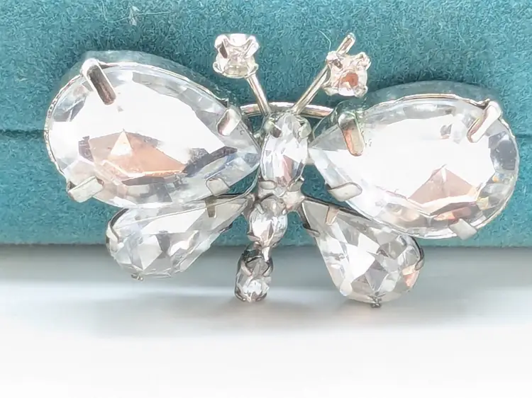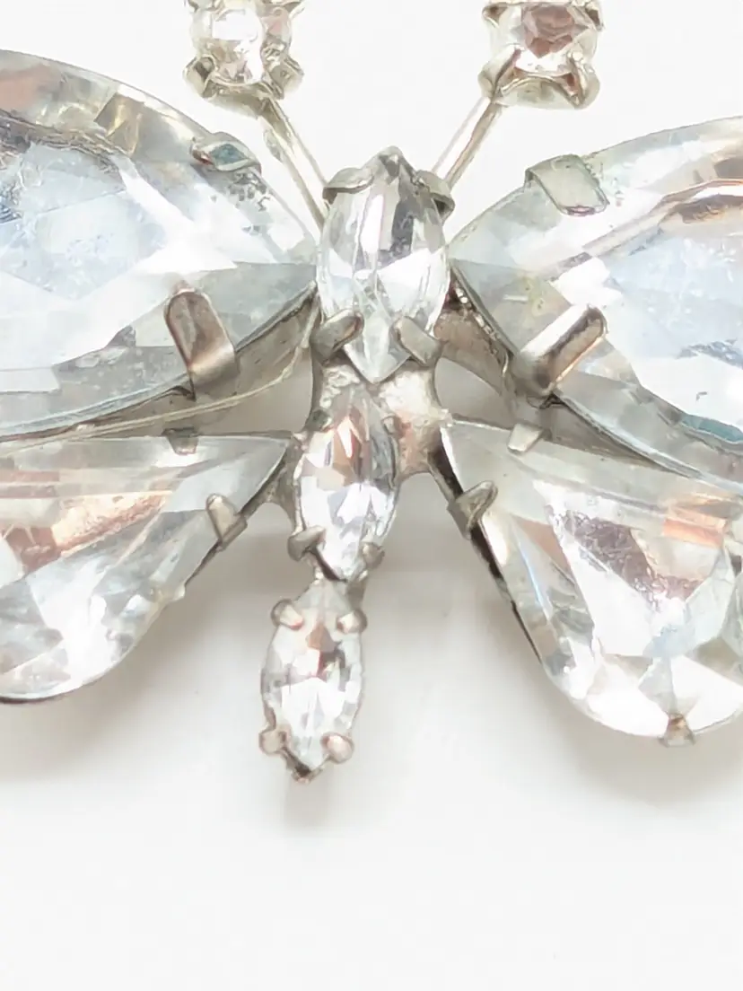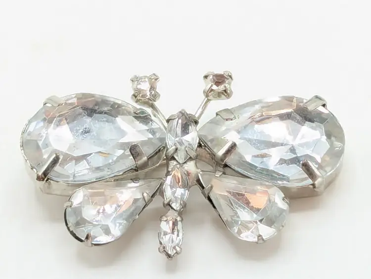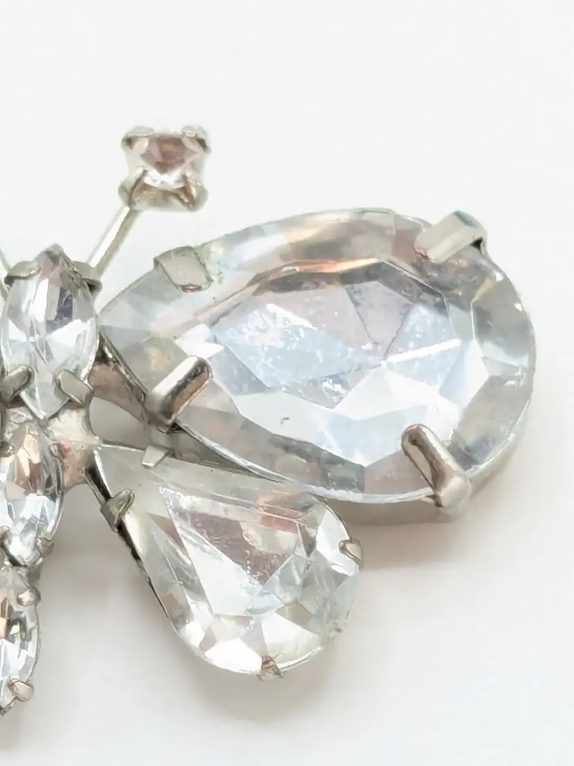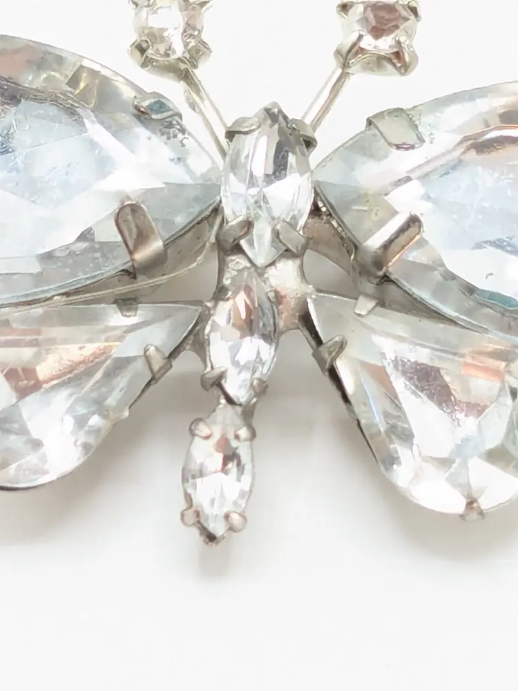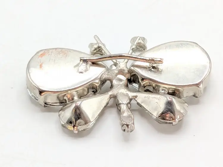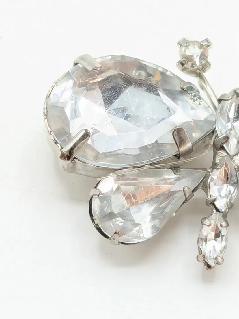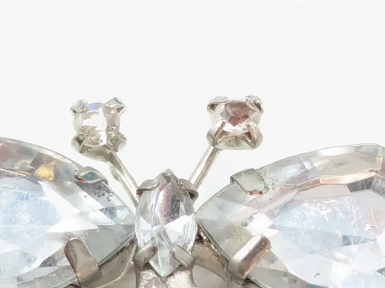 Good condition. Silver tone is bright and shiny with no color loss. Clear gems are acrylic. Pendant measures 1 1/2" wide and 1" in length. EN3