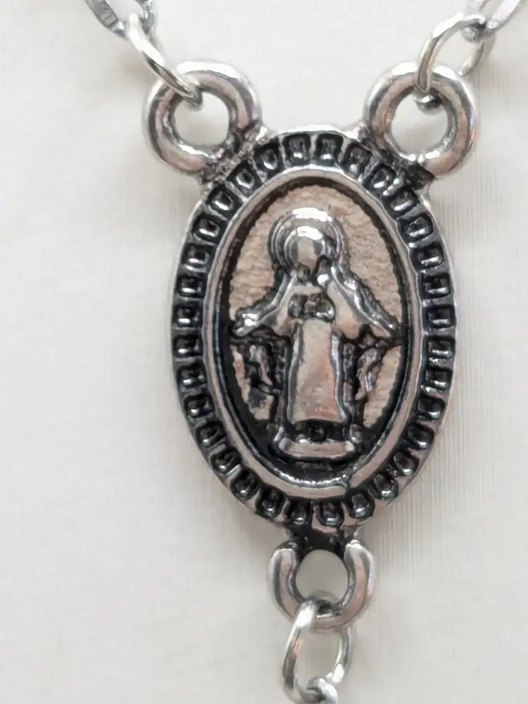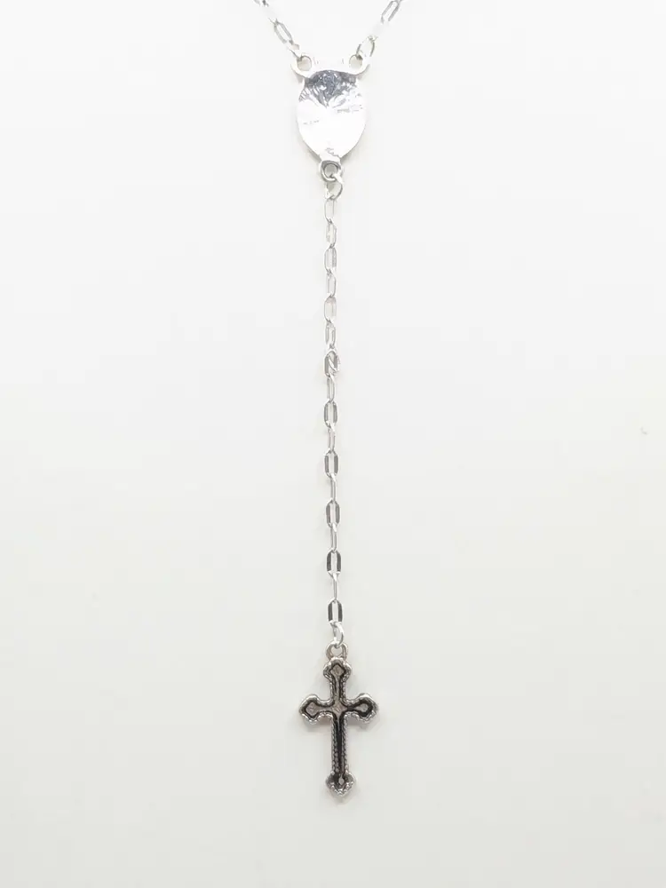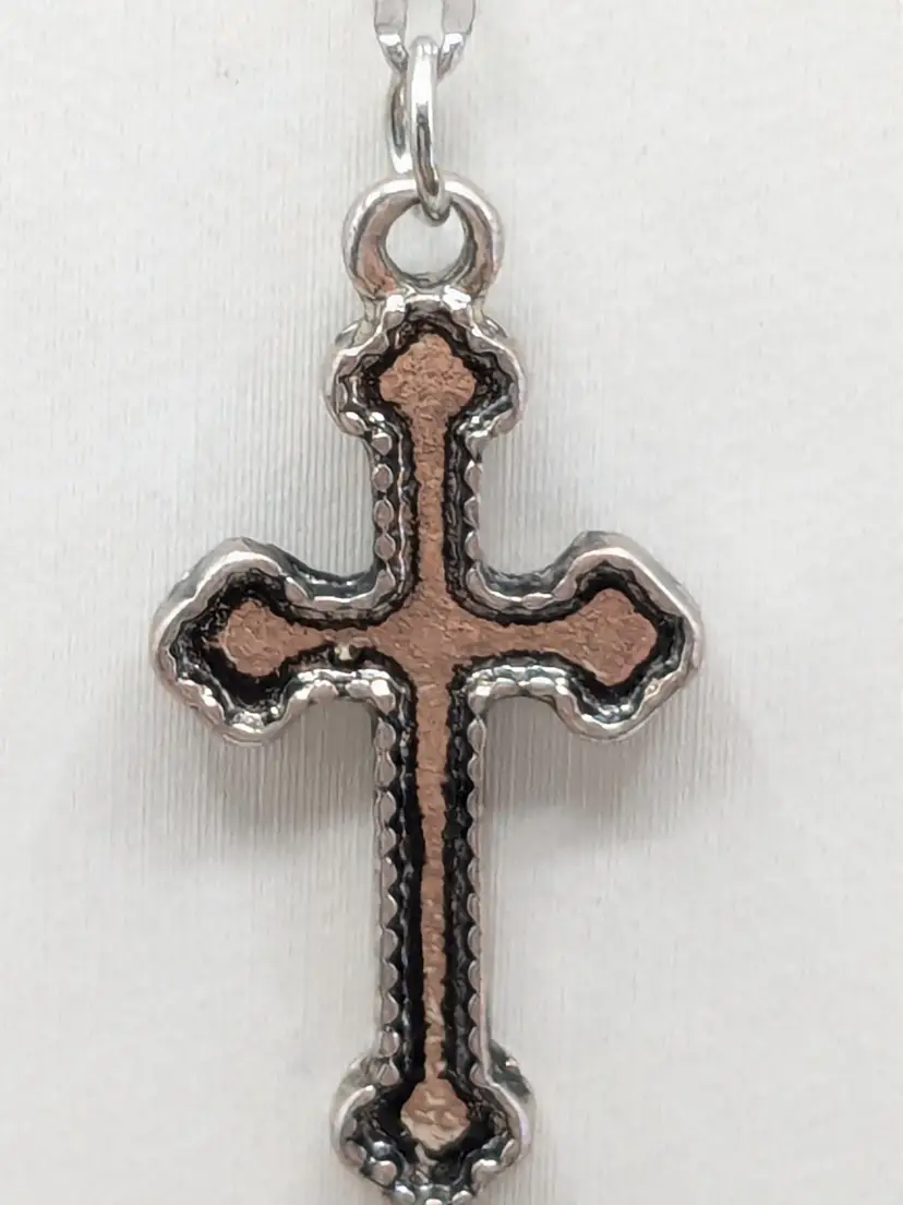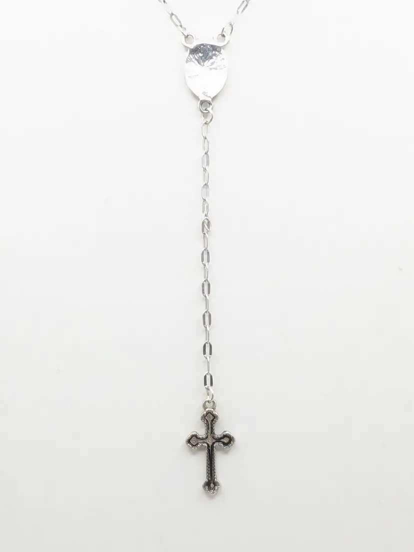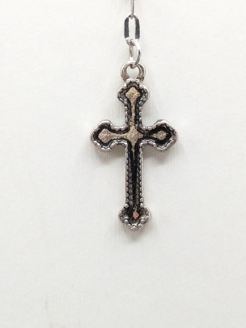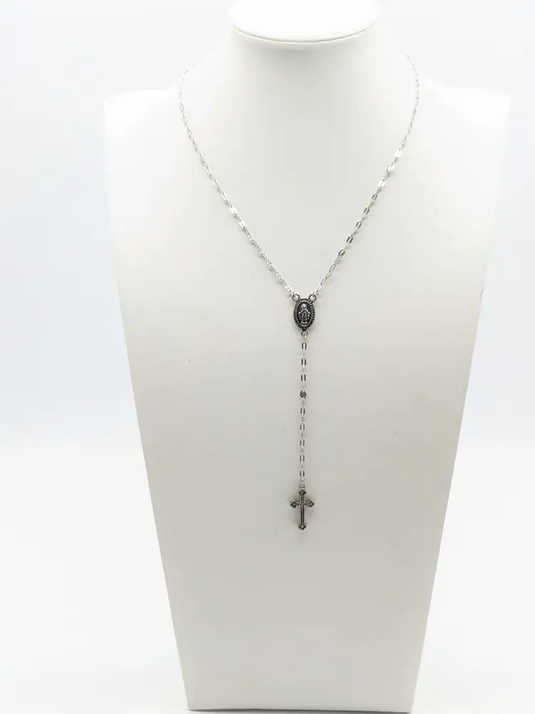 Good condition. Rosary/cross necklace. Measures 24" with a 3" extender. EN3