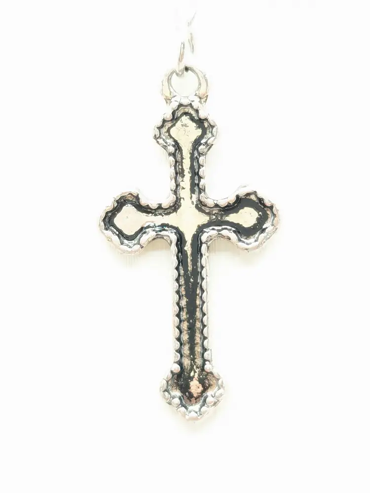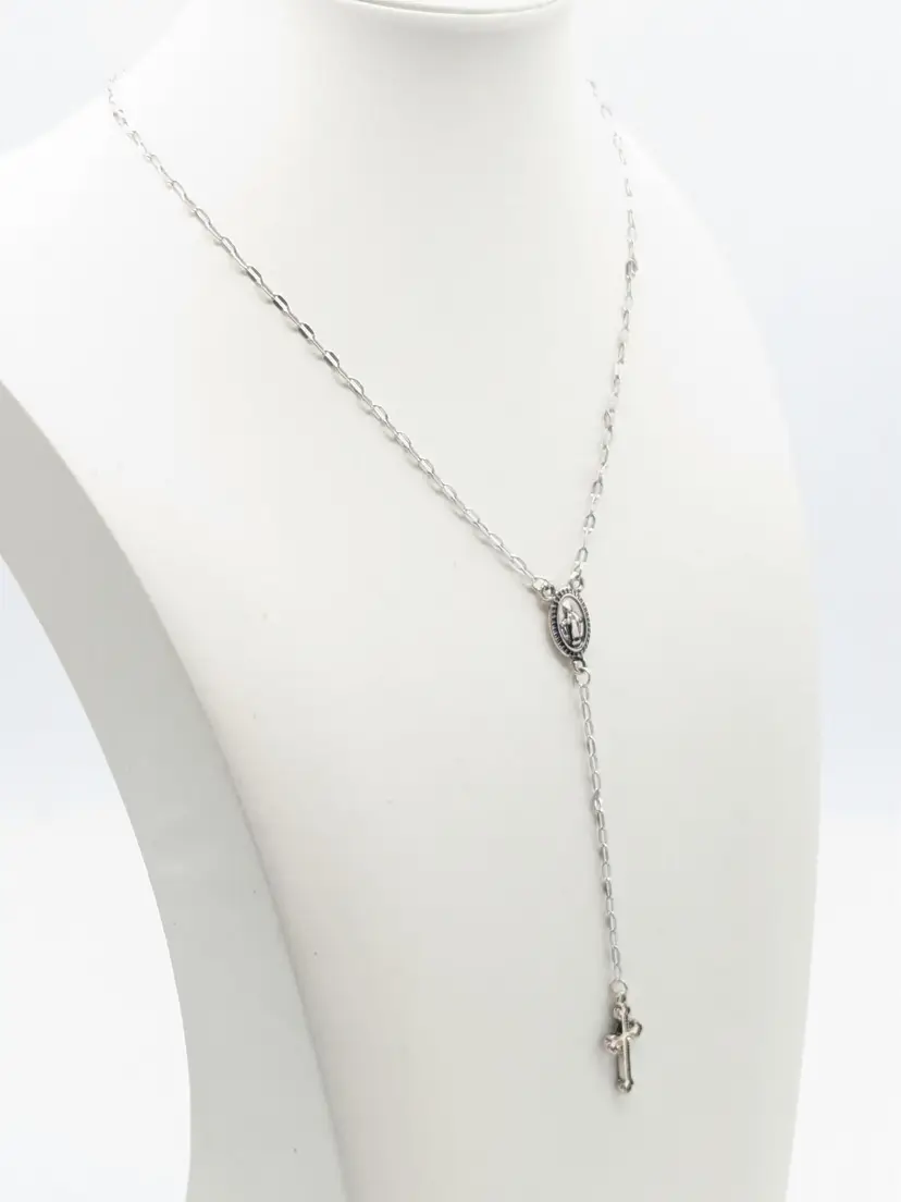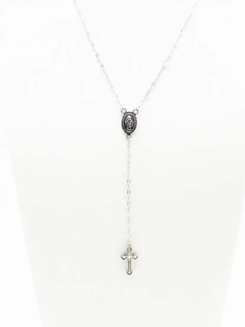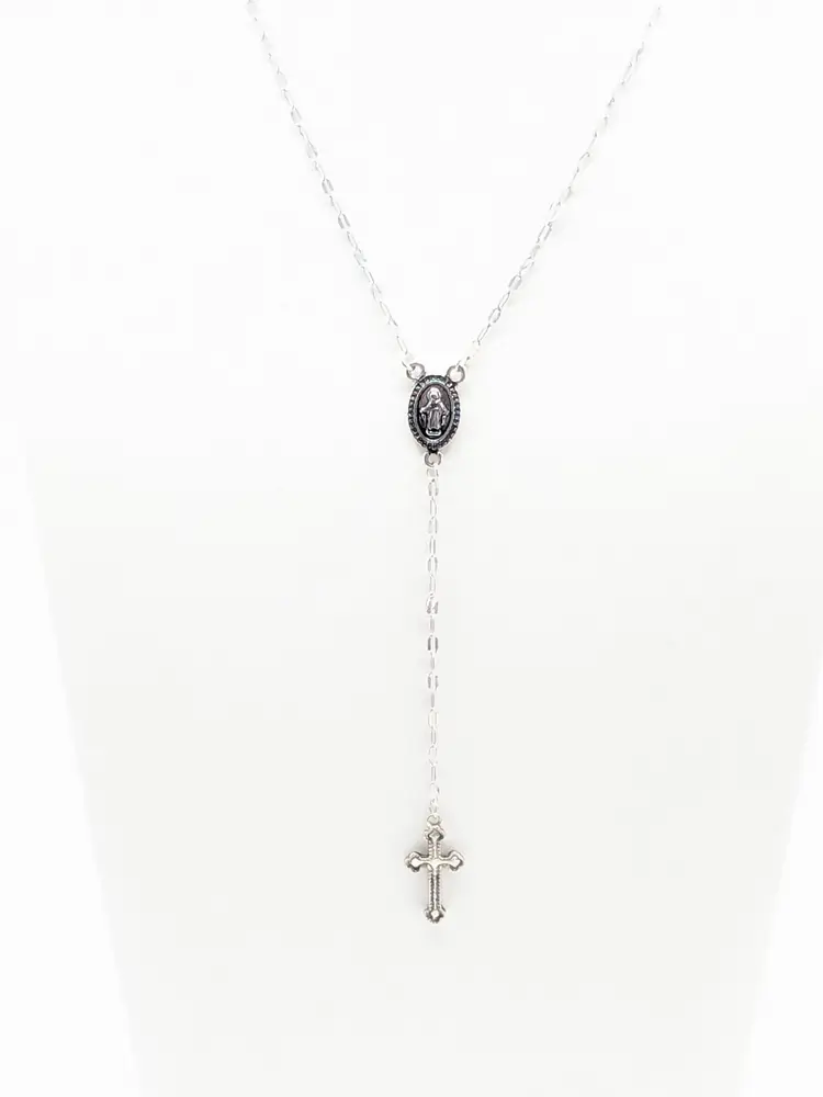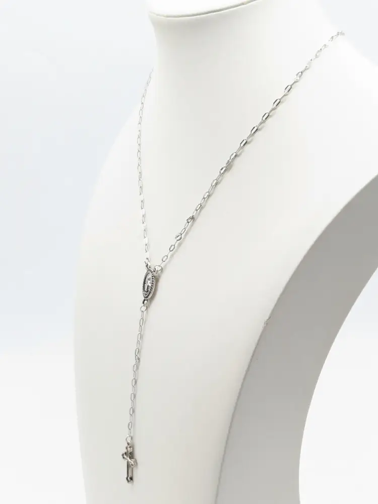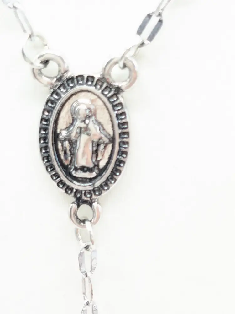 Good condition. Rosary/cross necklace. Measures 24" with a 3" extender. EN3