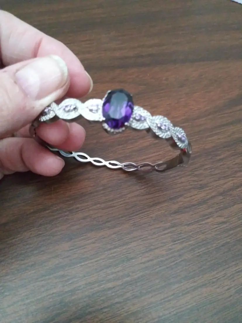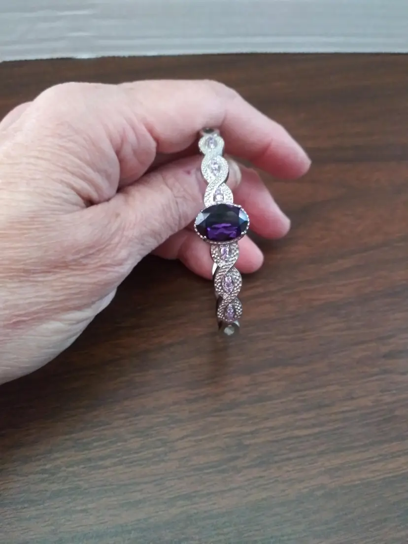 New. Excellent condition. Made with Swarovski elements and Stainless Steel surgical grade metal. Open 6 and 3/4. Very beautiful and shinny.