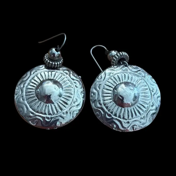 Metal silver tone sun shape earrings