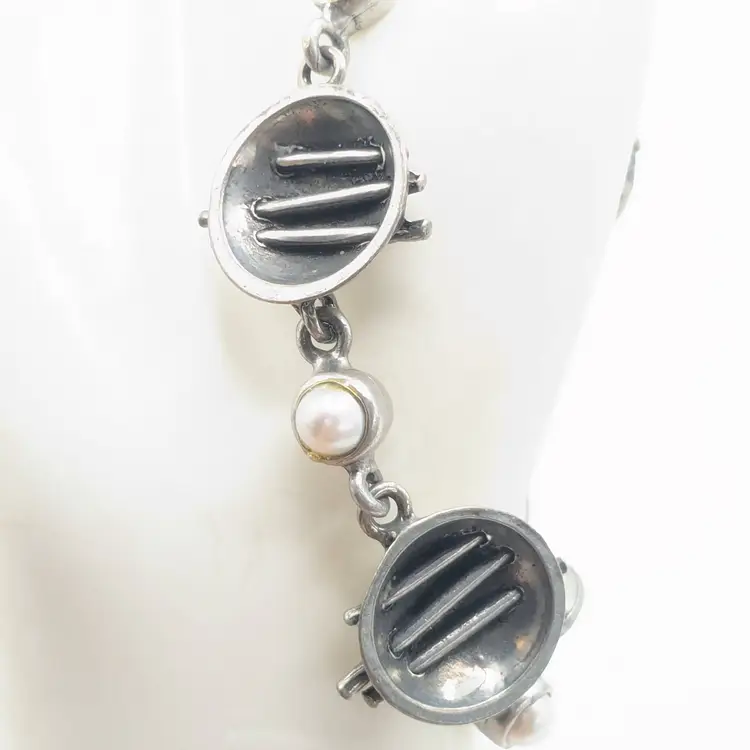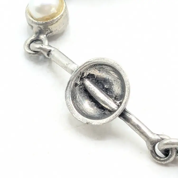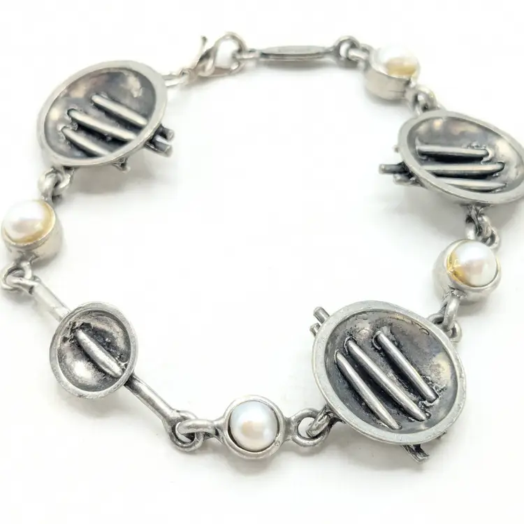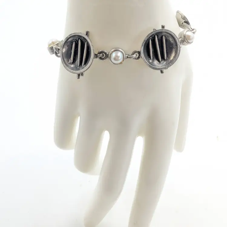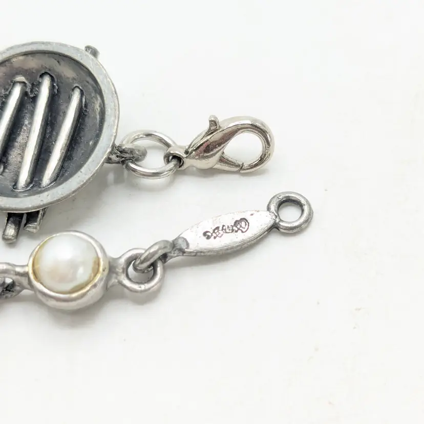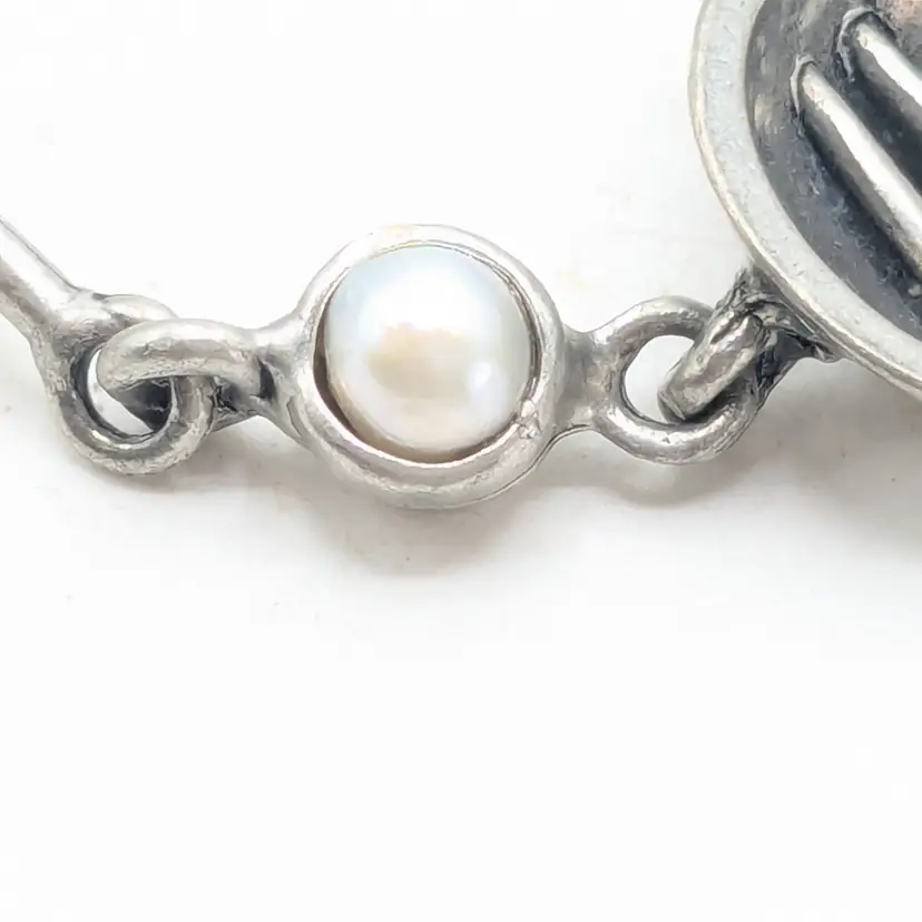 Good condition. Unique design. Features faux pearls. Signed, cannot make out signature. Made in Canada. Measures 7 1/4". EN3