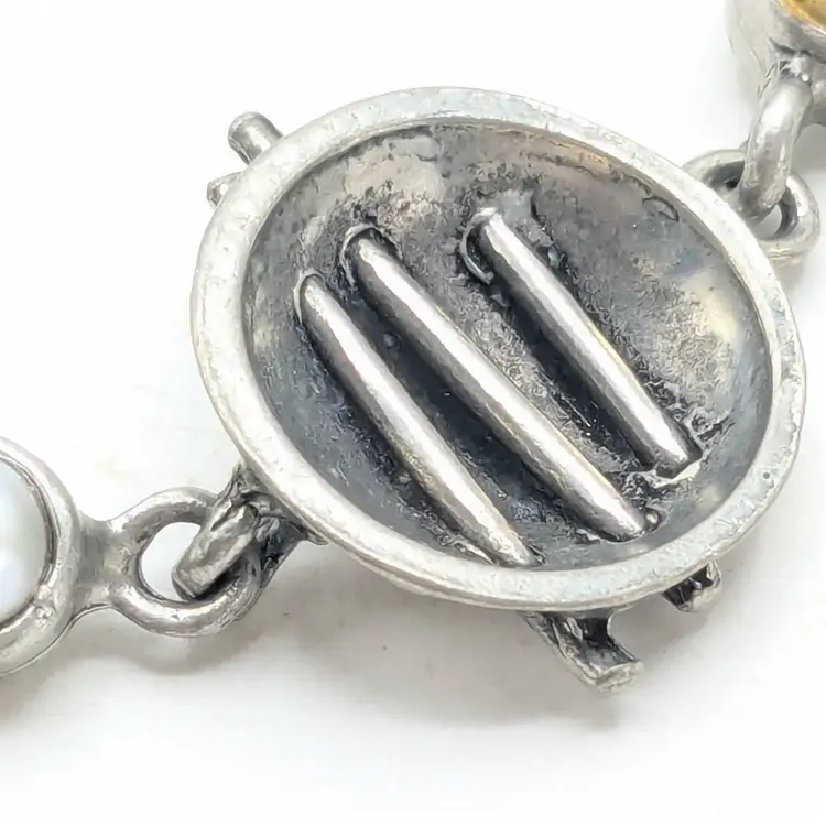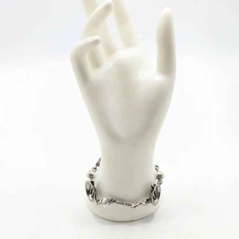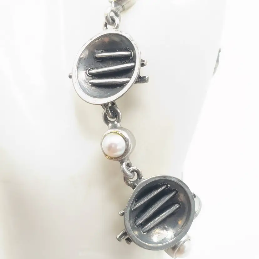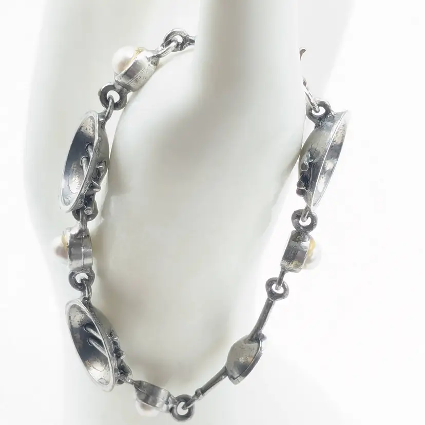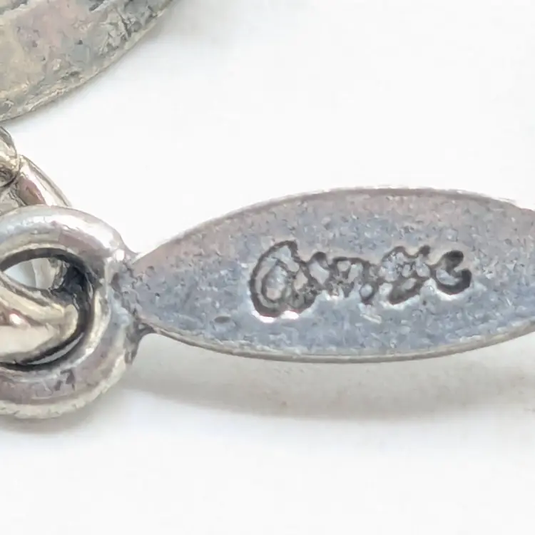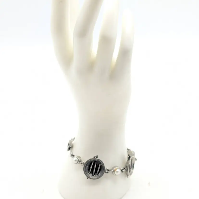 Good condition. Unique design. Features faux pearls. Signed, cannot make out signature. Made in Canada. Measures 7 1/4". EN3