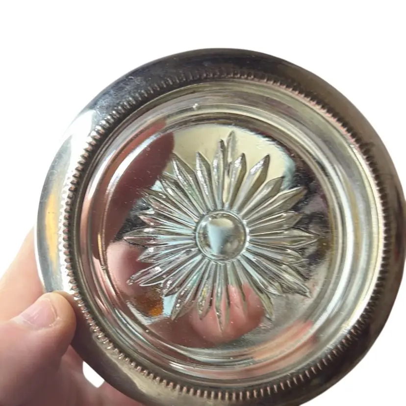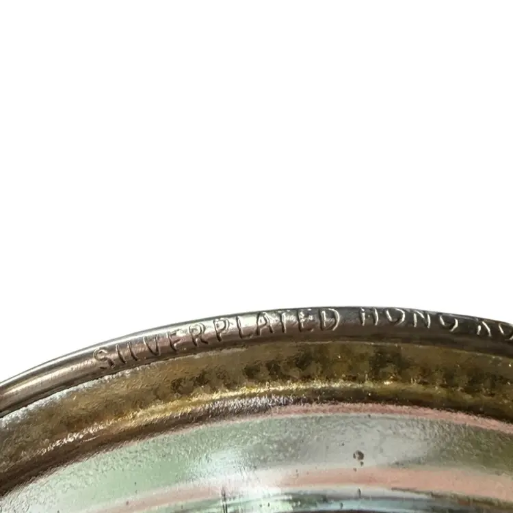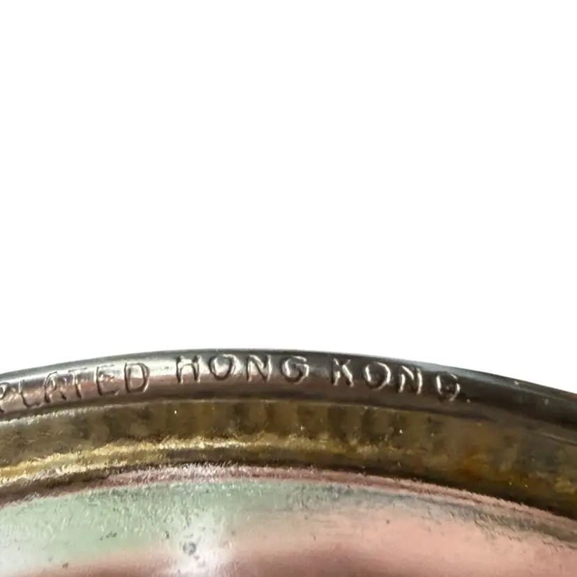 As is scratches and yellowing under it and mark silver tone Hong Kong measured 4wide