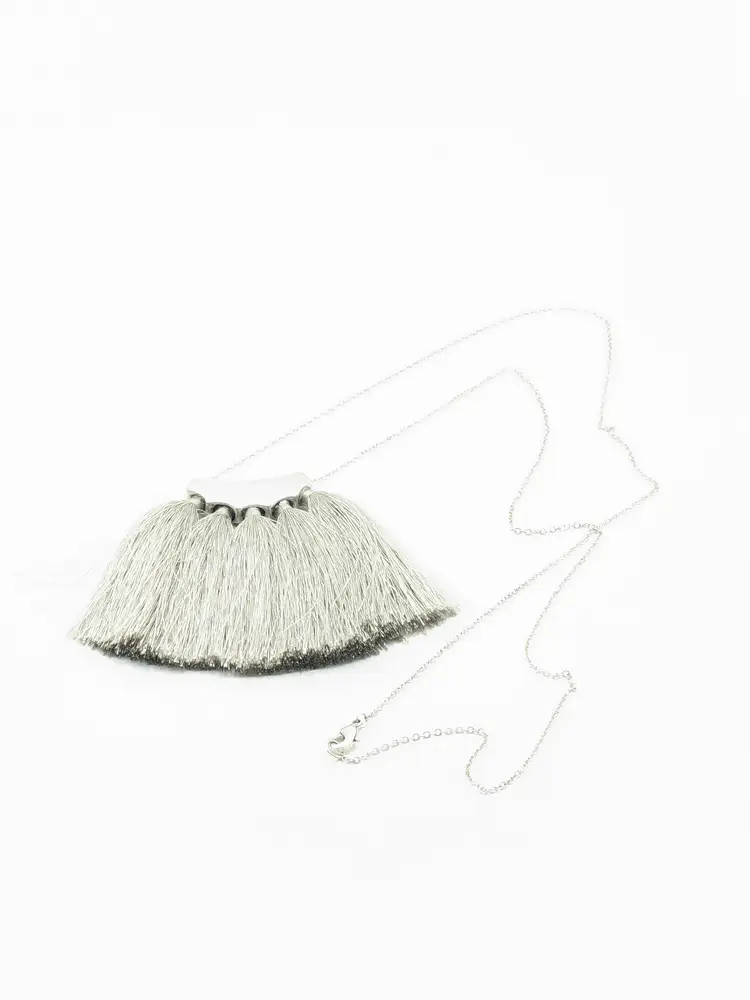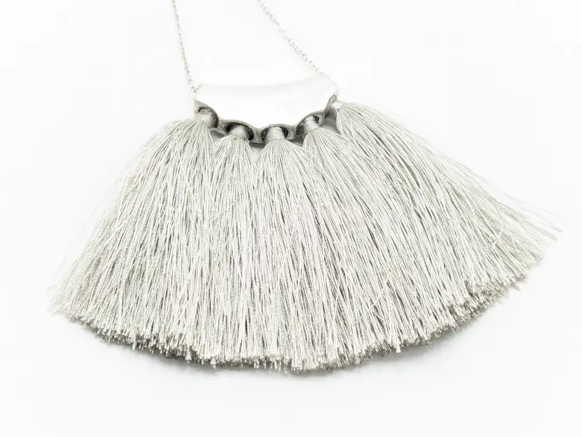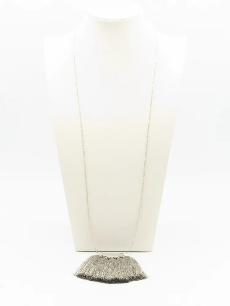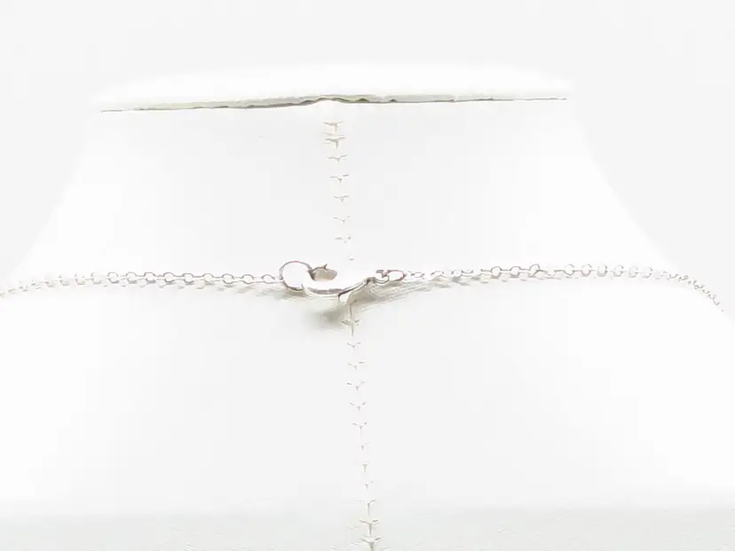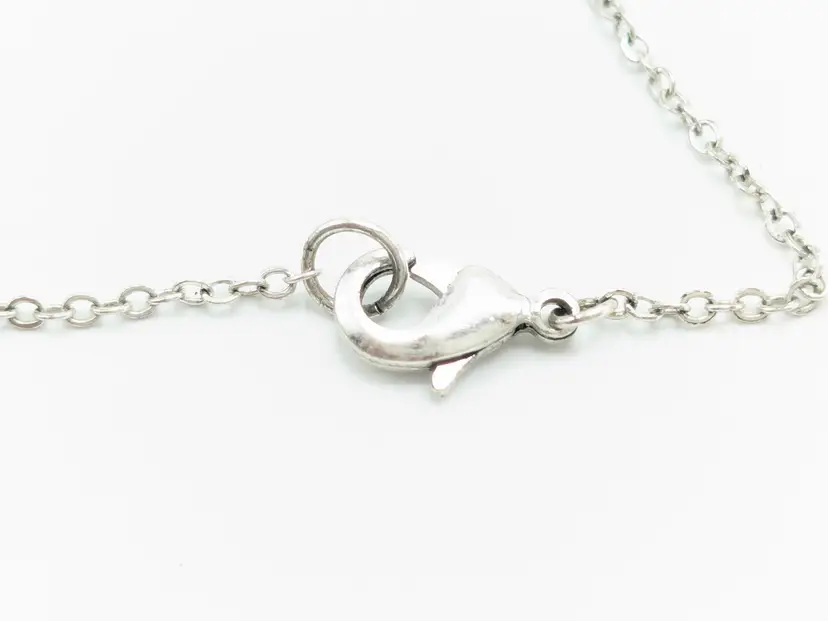 Good condition. Silver tone is bright and shiny with no color loss. Chain measures 30" and pendant is 3" in length and 3 1/2" wide. EN3