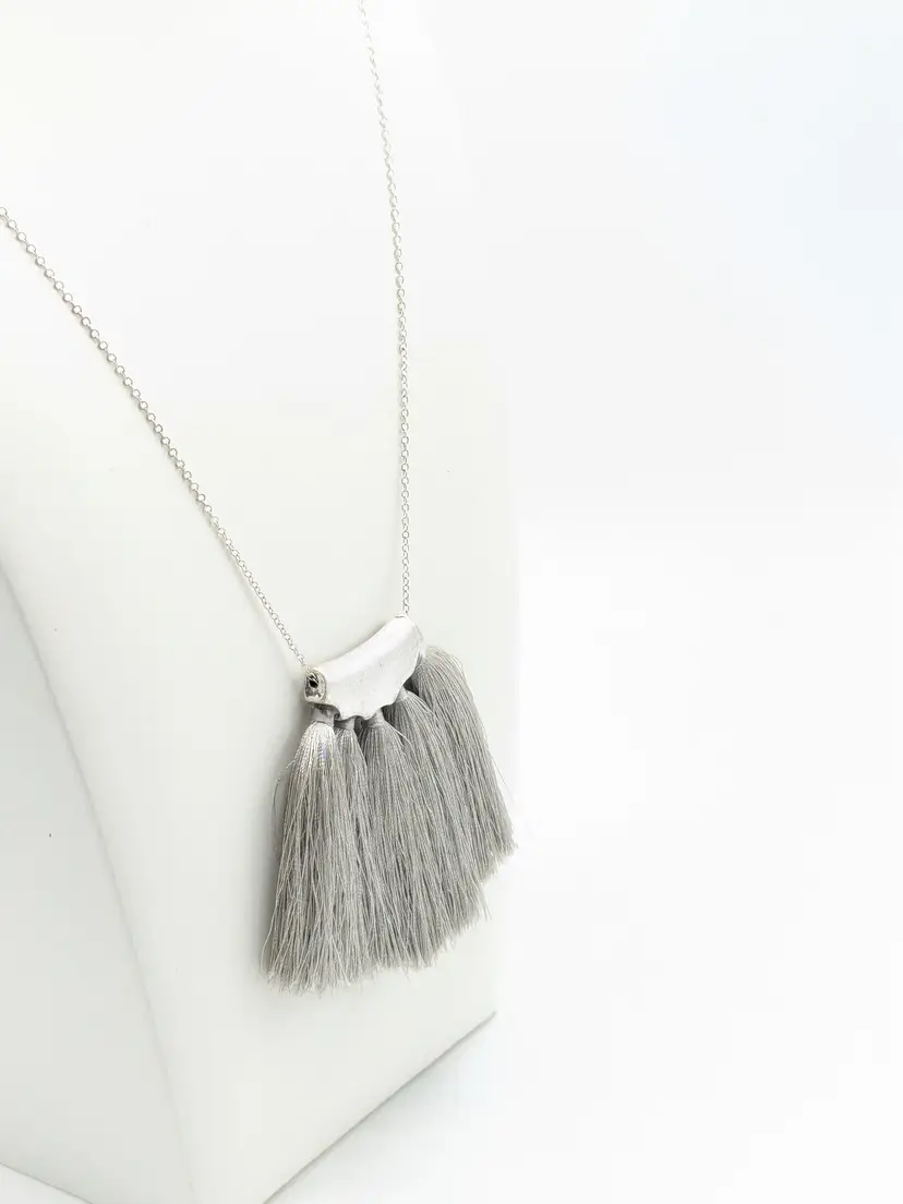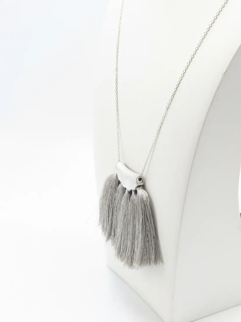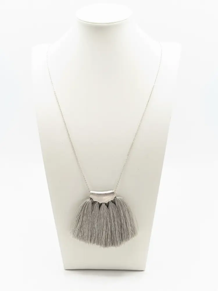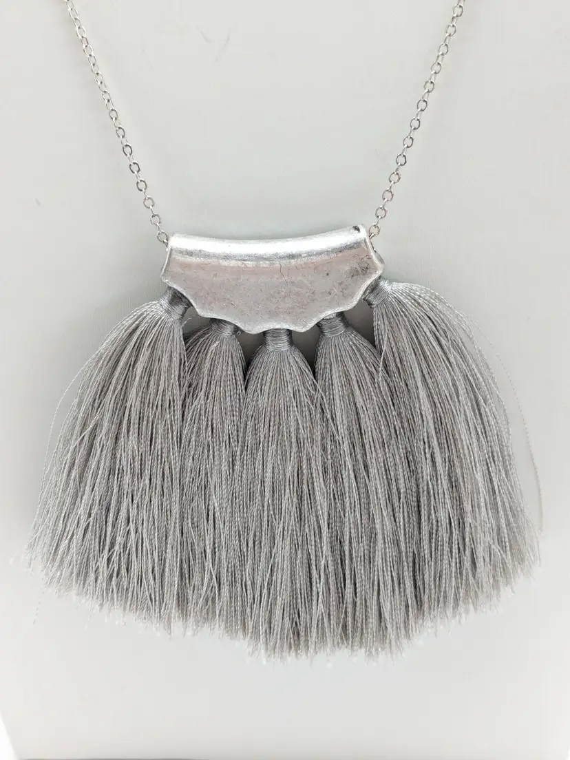 Good condition. Silver tone is bright and shiny with no color loss. Chain measures 30" and pendant is 3" in length and 3 1/2" wide. EN3