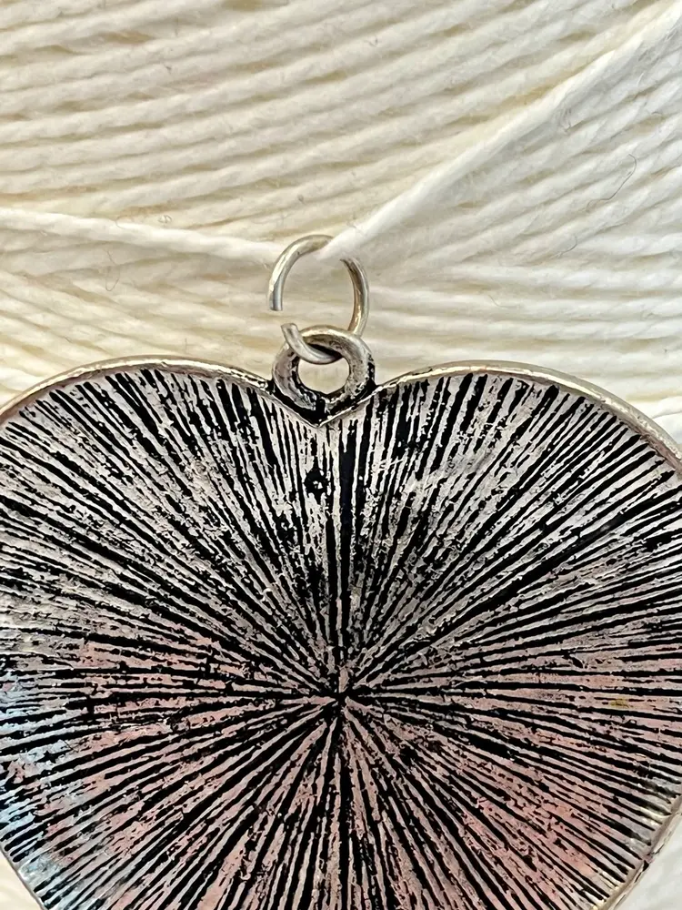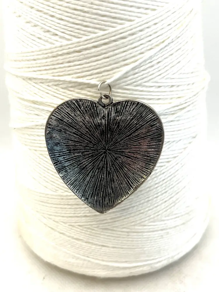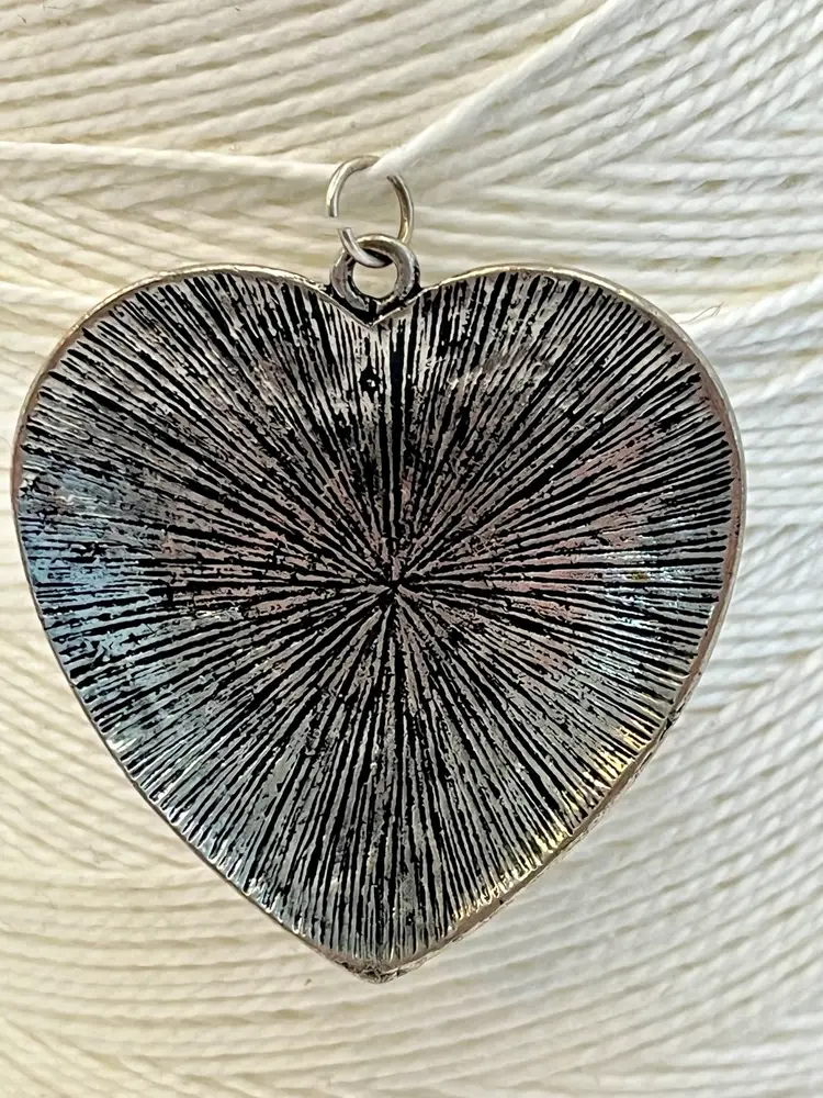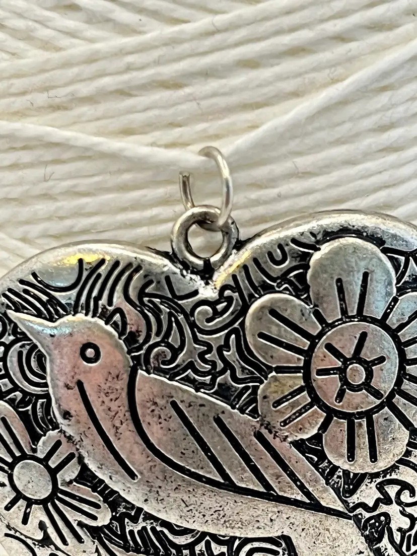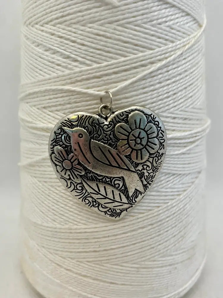 Silver Tone Metal Floral Bird Leaf Heart Pendant 2”