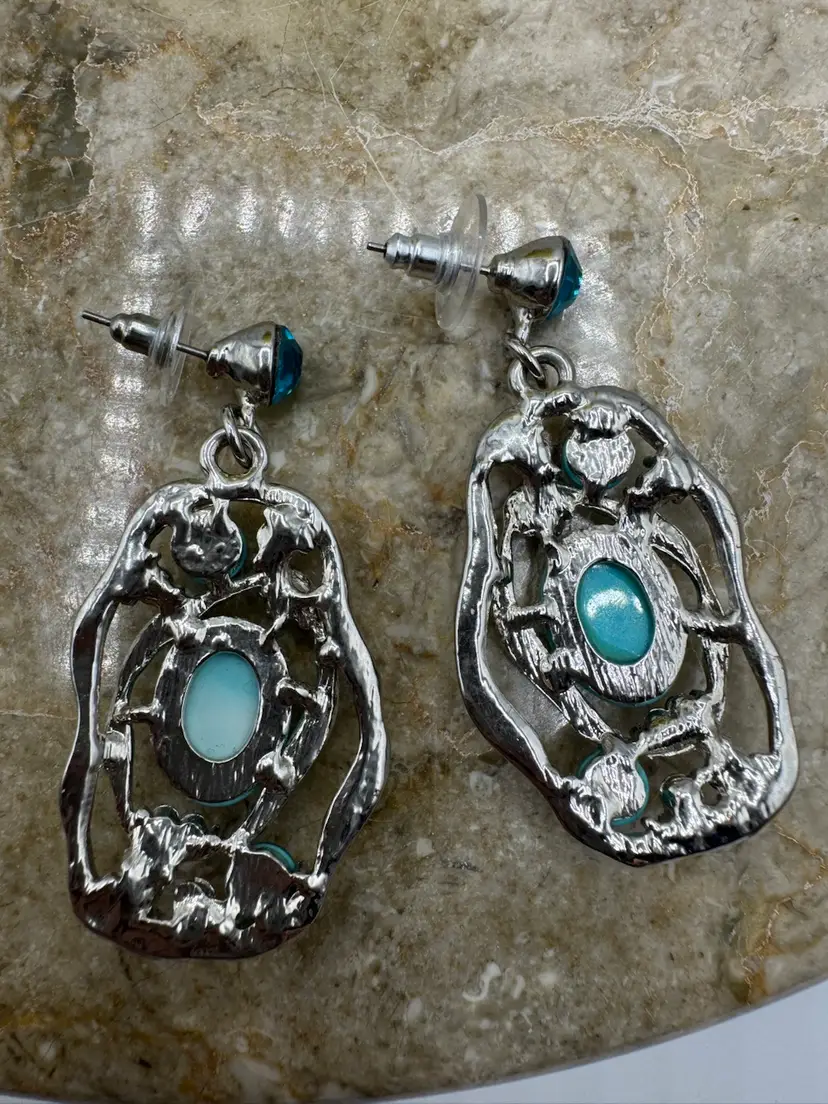 Absolutely beautiful colors on this Silvertone pair of pierced earrings. Excellent condition. Measure 2 1/4” X 1”