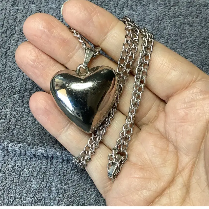 Silver Tone Necklace Heart Pendant 24”