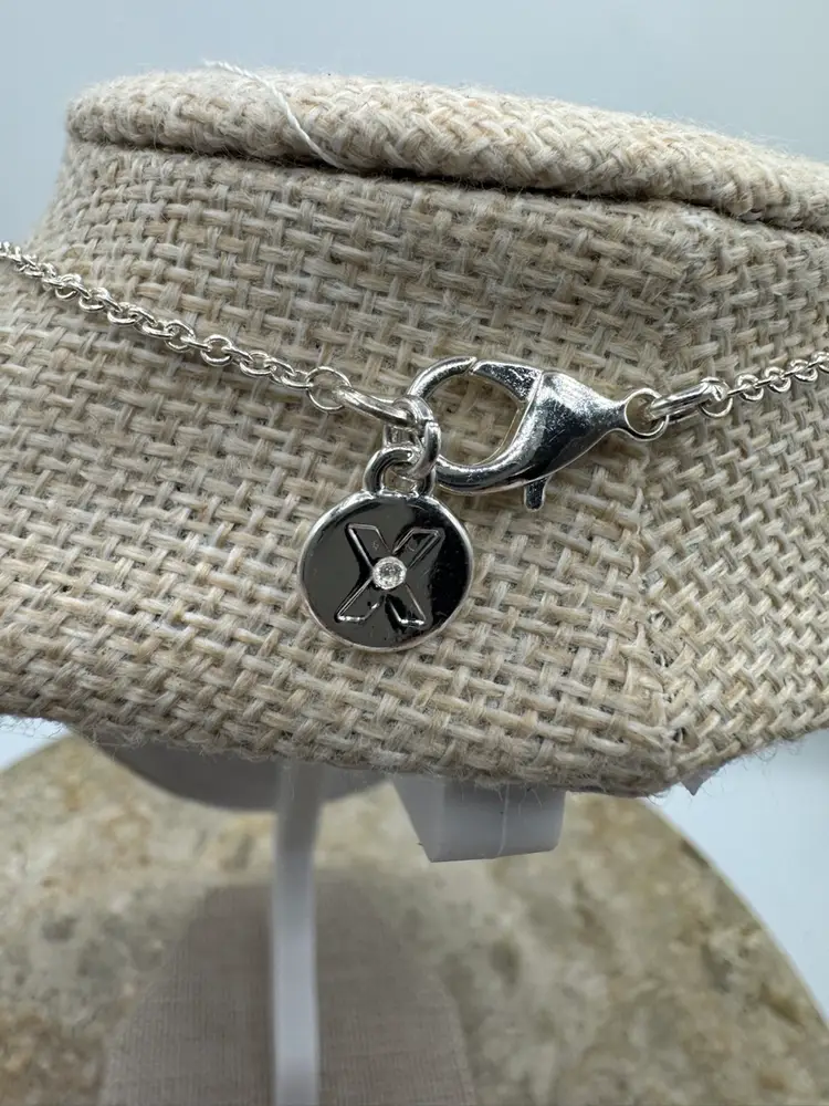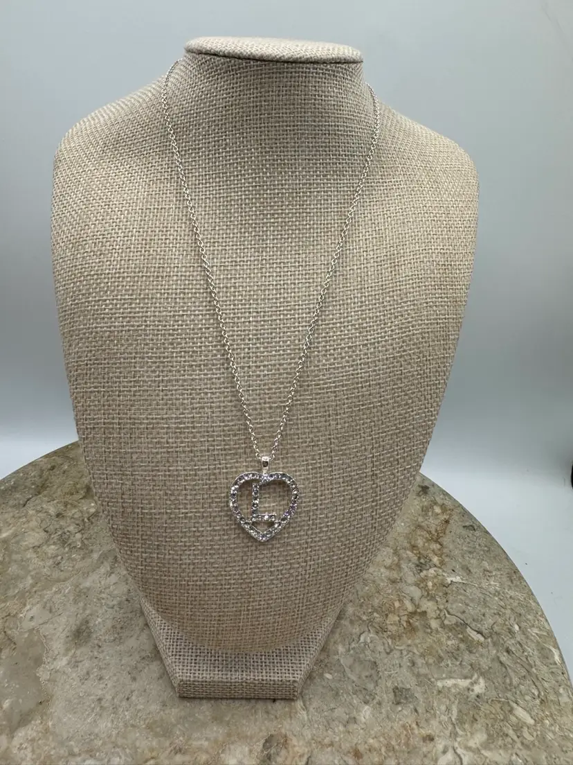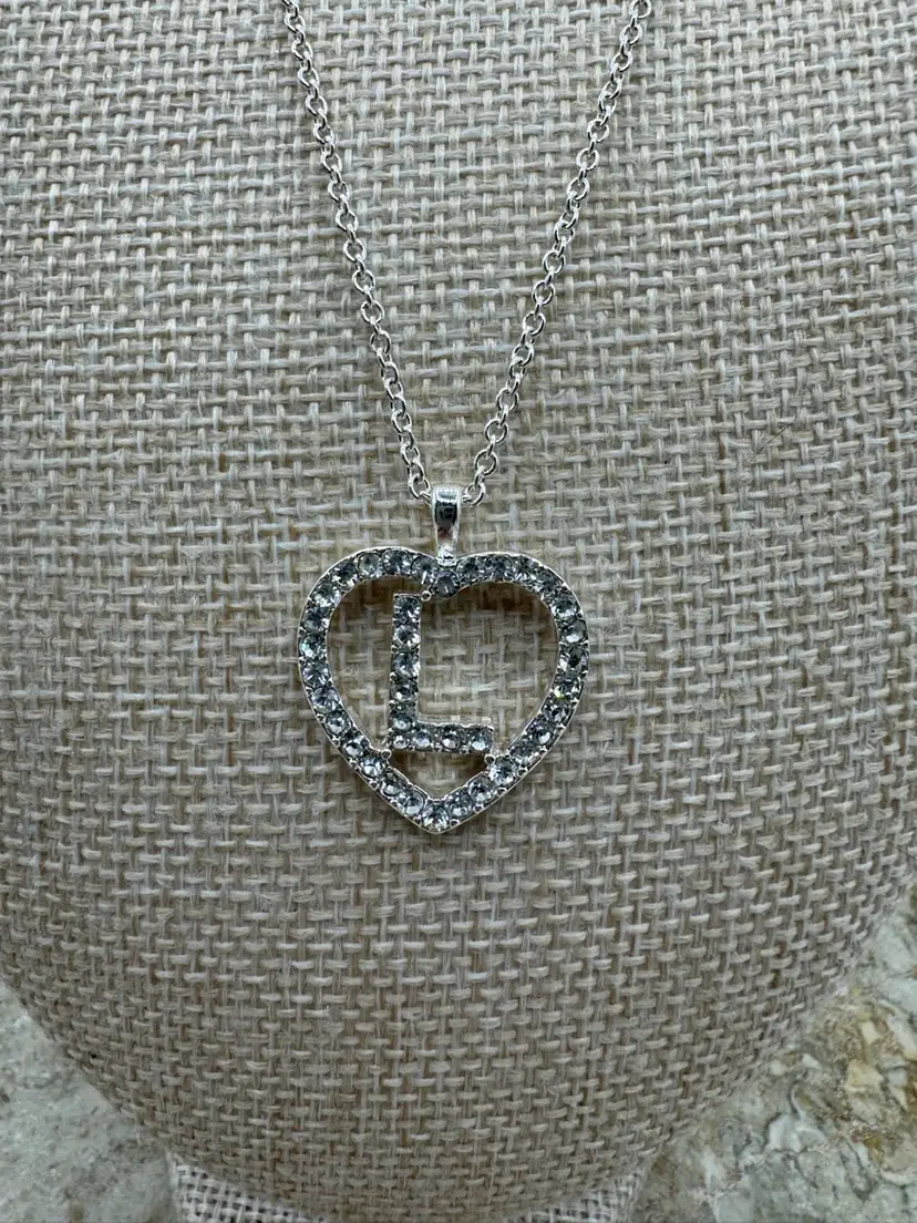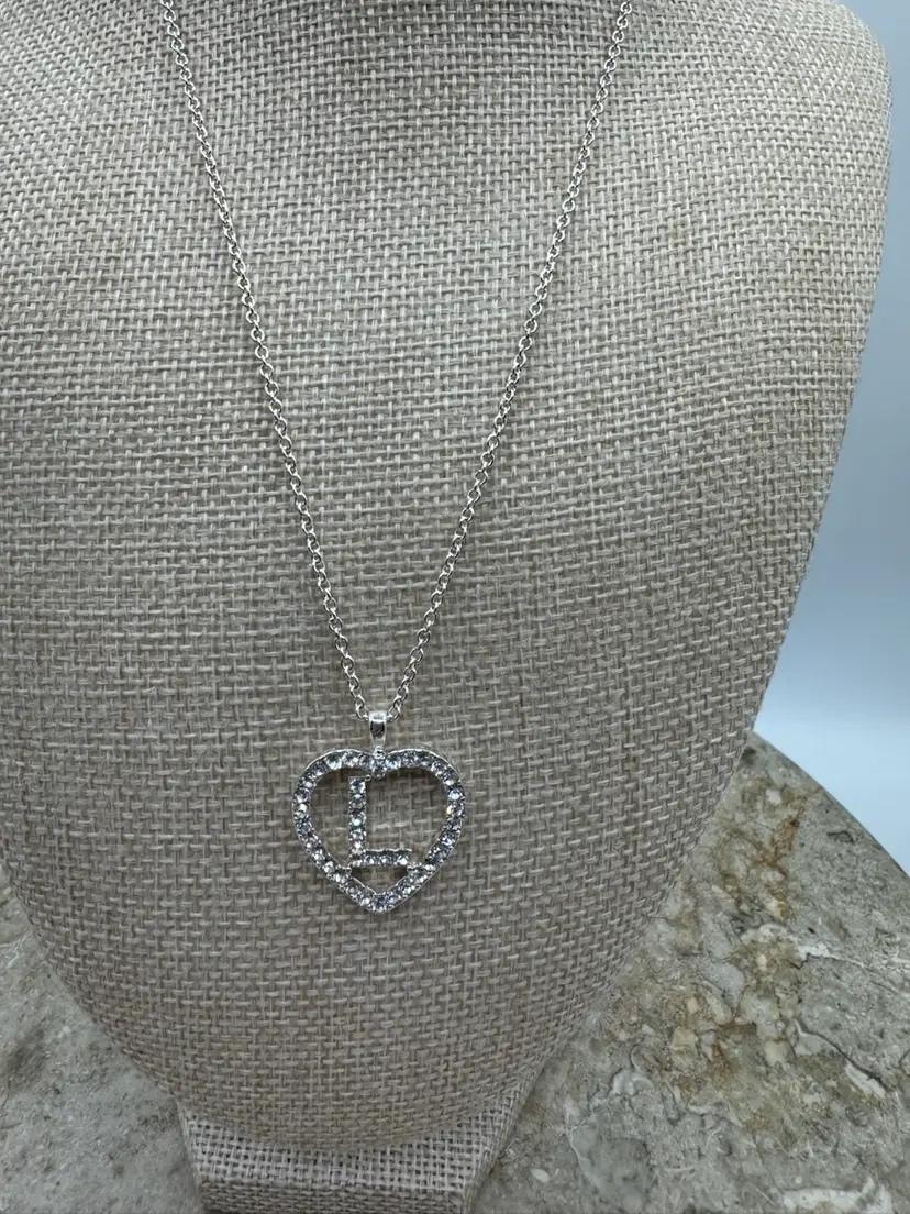Silver Tone Rhinestone Letter L. Beautiful sparkle. Good condition. Necklace 16”