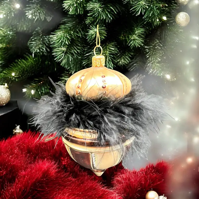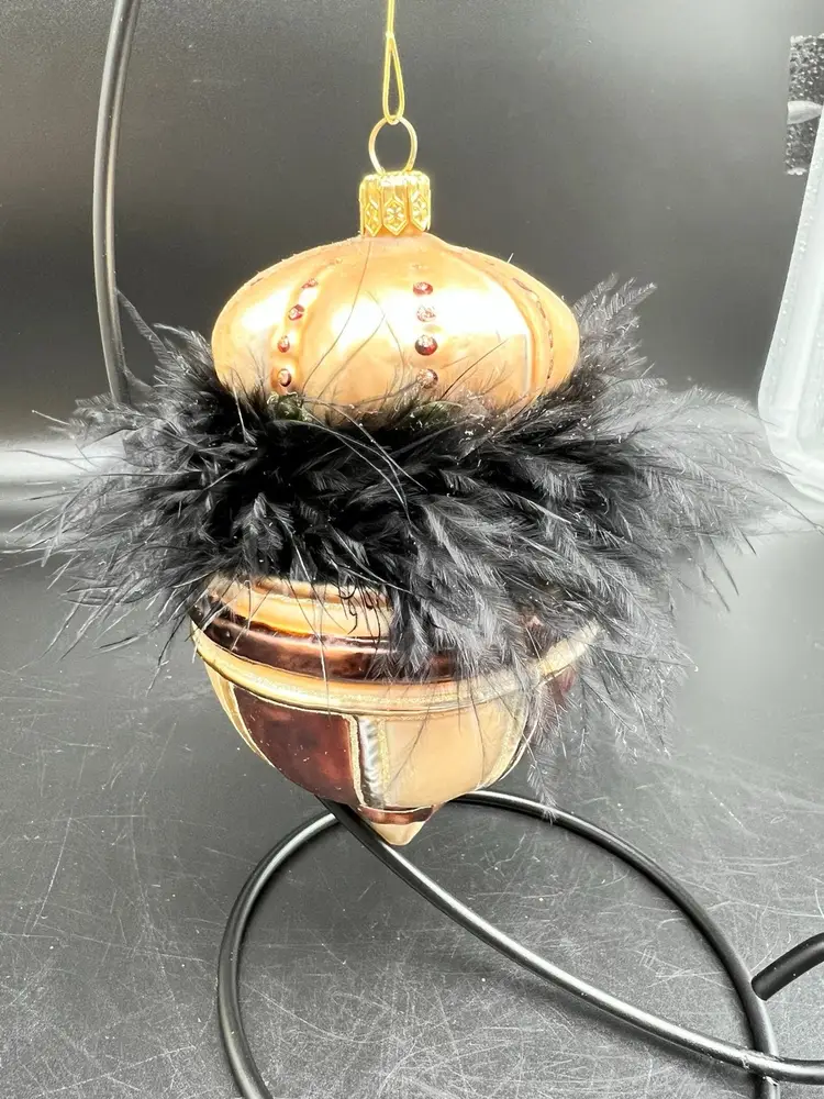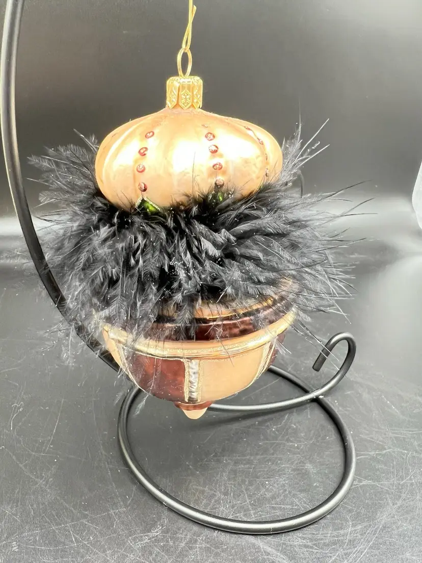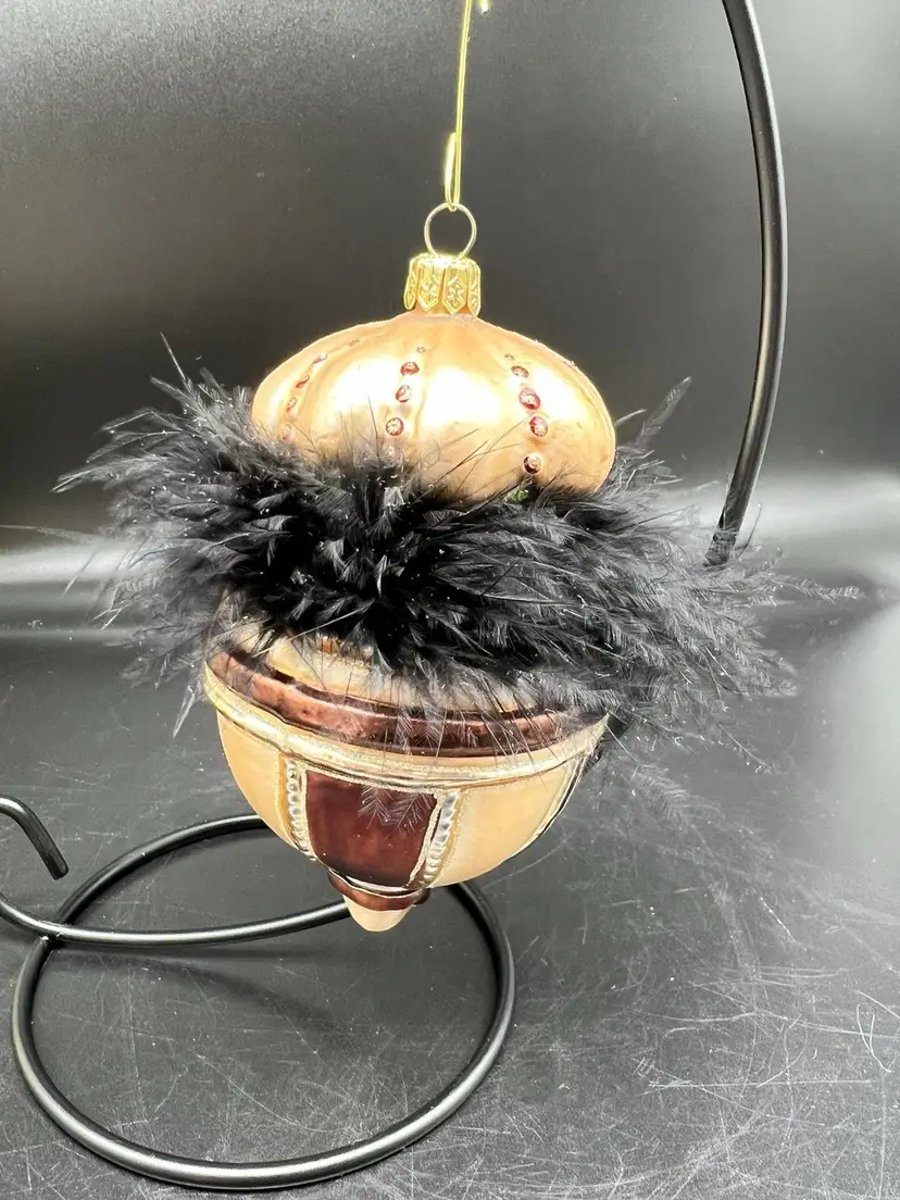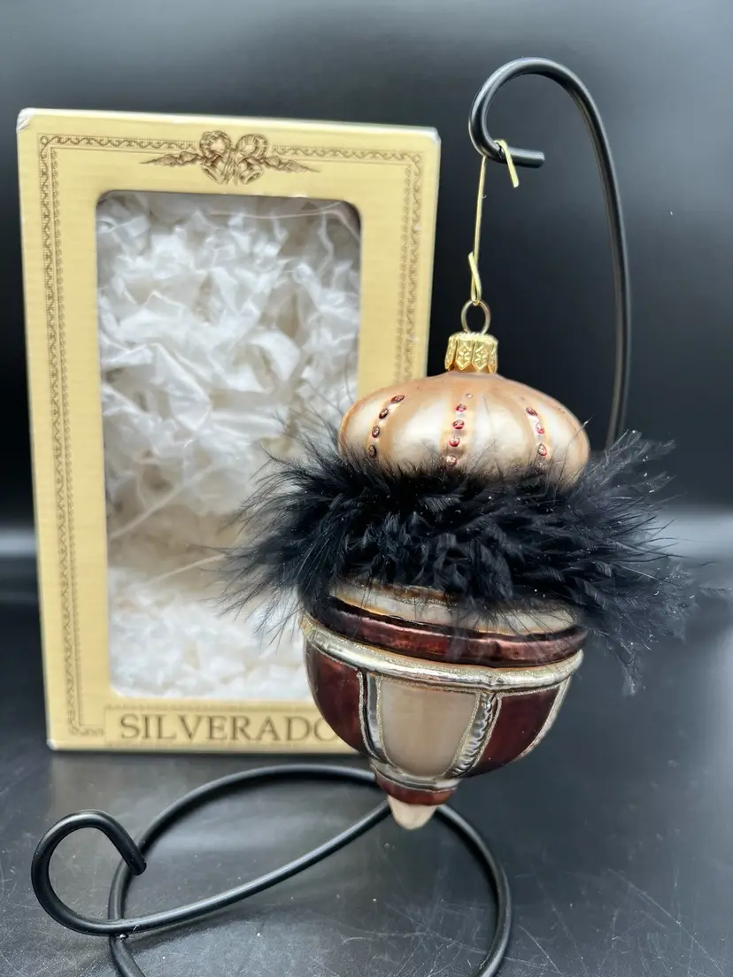 Add a touch of elegance to your holiday decor with the Silverado Poland Blown Glass Acorn Ornament. Crafted with meticulous attention to detail, this ornament features a beautiful brown color accented with gold glitter, creating a stunning visual appeal that captures the spirit of Christmas.