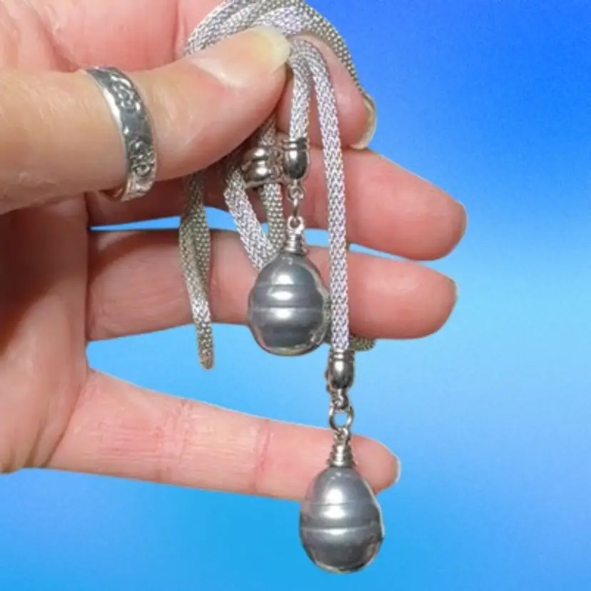 SilverTone Bolo Faux Pearl Dangle Necklace 30”