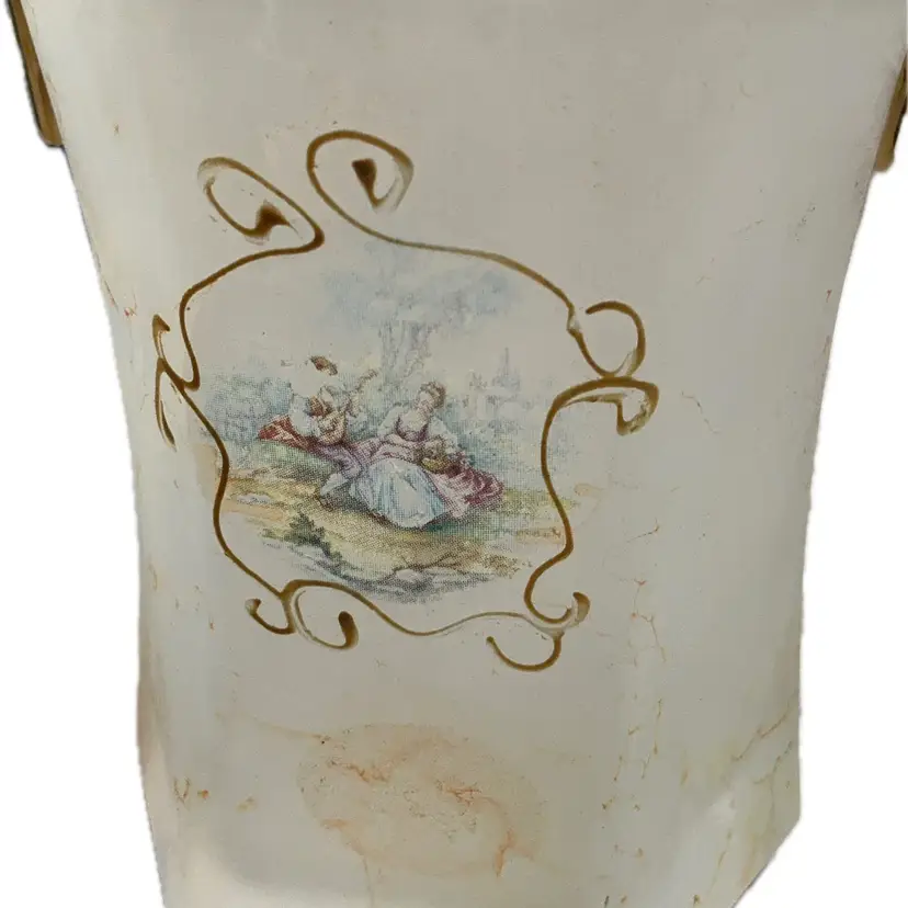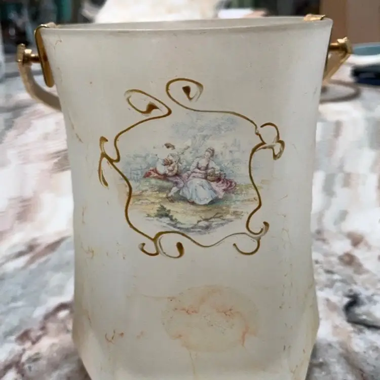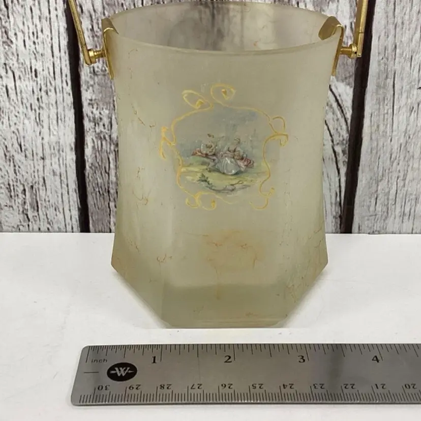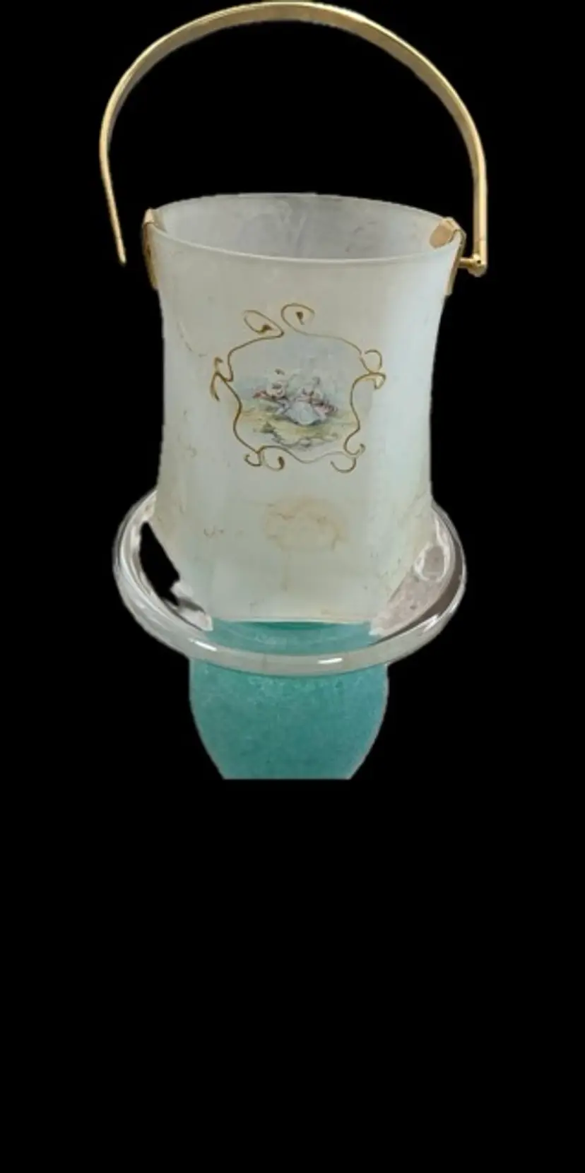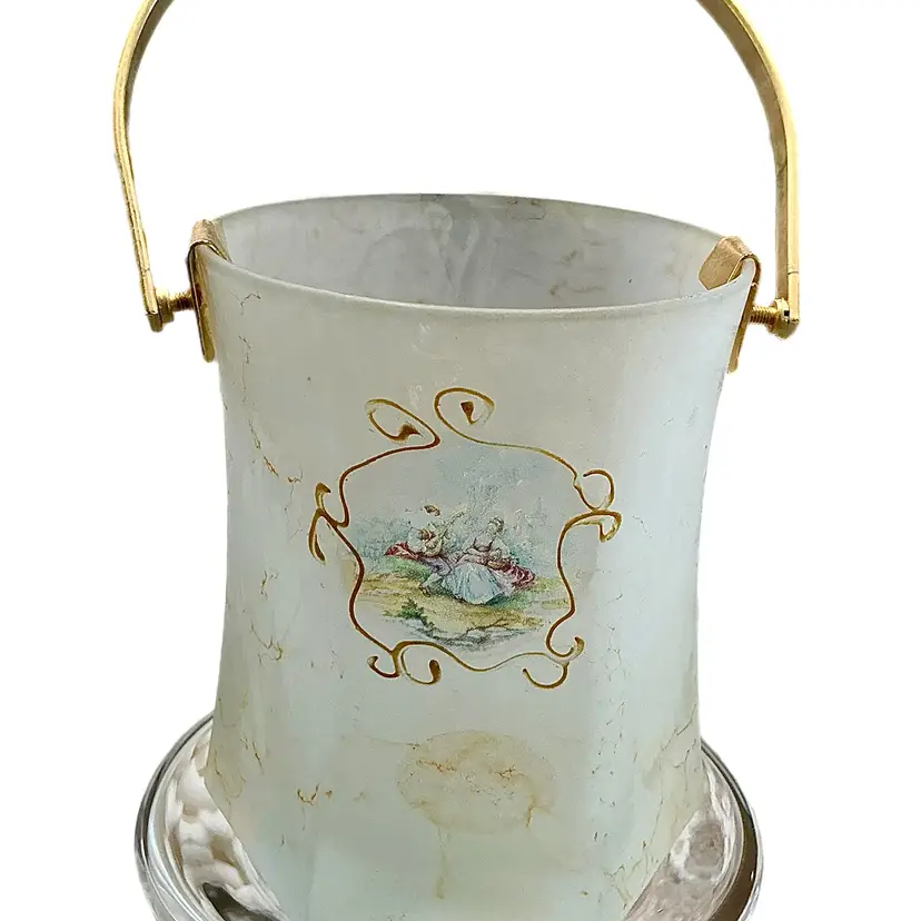 Vintage Creazioni Silvestri Arte Murano crystal bucket with alabastro marbleized finish, gilt handle.