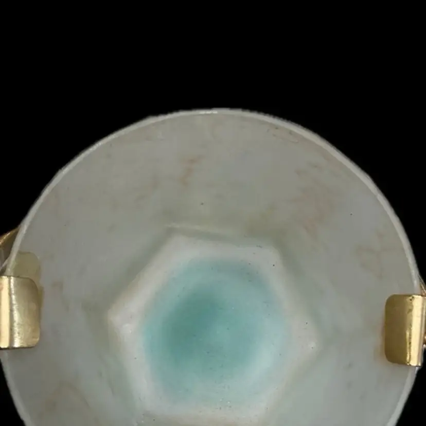 Approx size: 7" tall with handle ~4.5" wide Hexagon shape