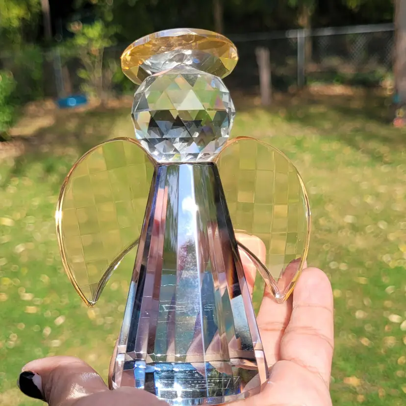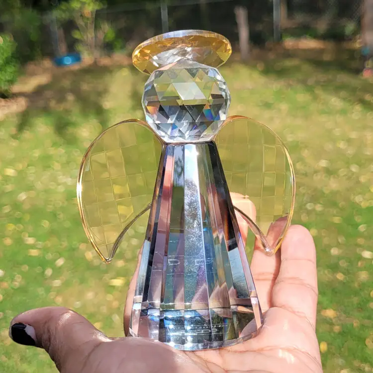 Simon Designs-Crystal Guardian Angel- Frosted Amber- Paperweight- 4 1/4