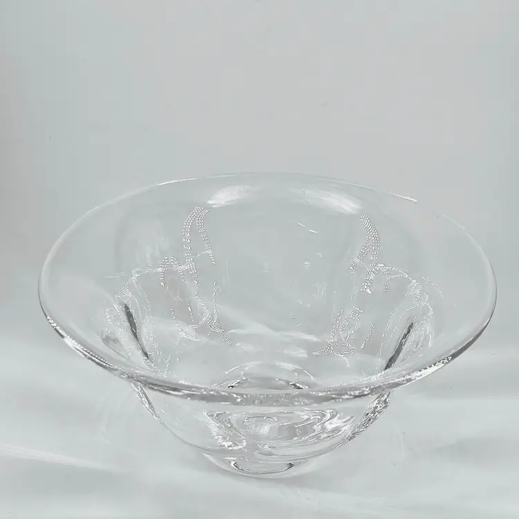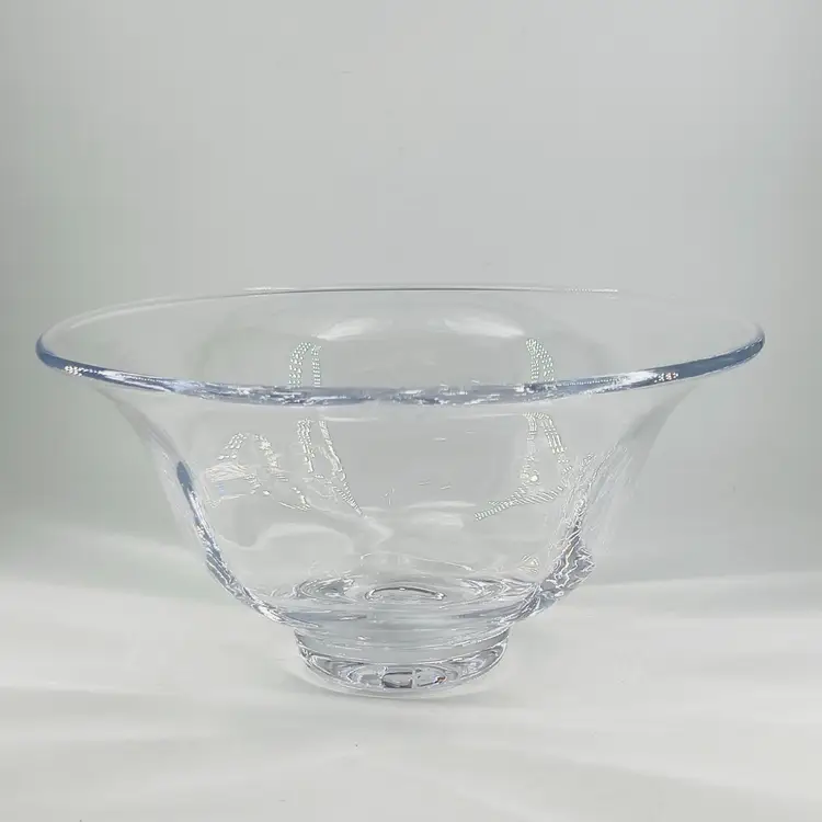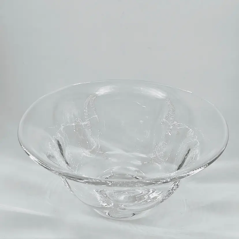 This classic centerpiece bowl is known for its elegant, flared rim and sturdy, stepped pedestal base. Features a classic curved shape, pedestal foot, and faceted exterior The unique "folds" in the handmade glass are designed to capture and brilliantly refract light.