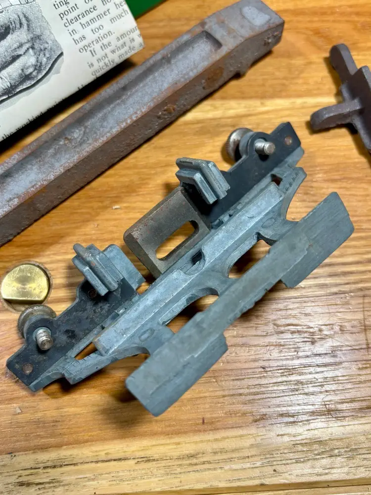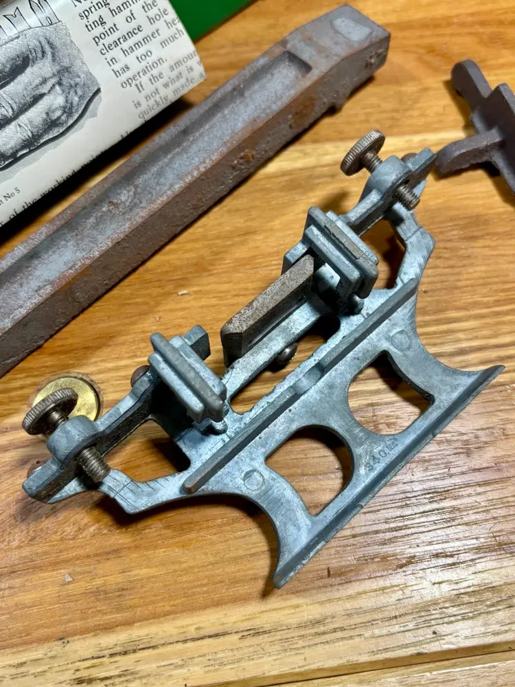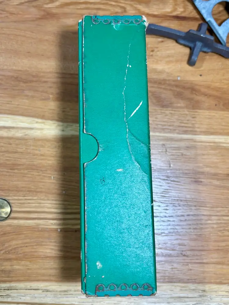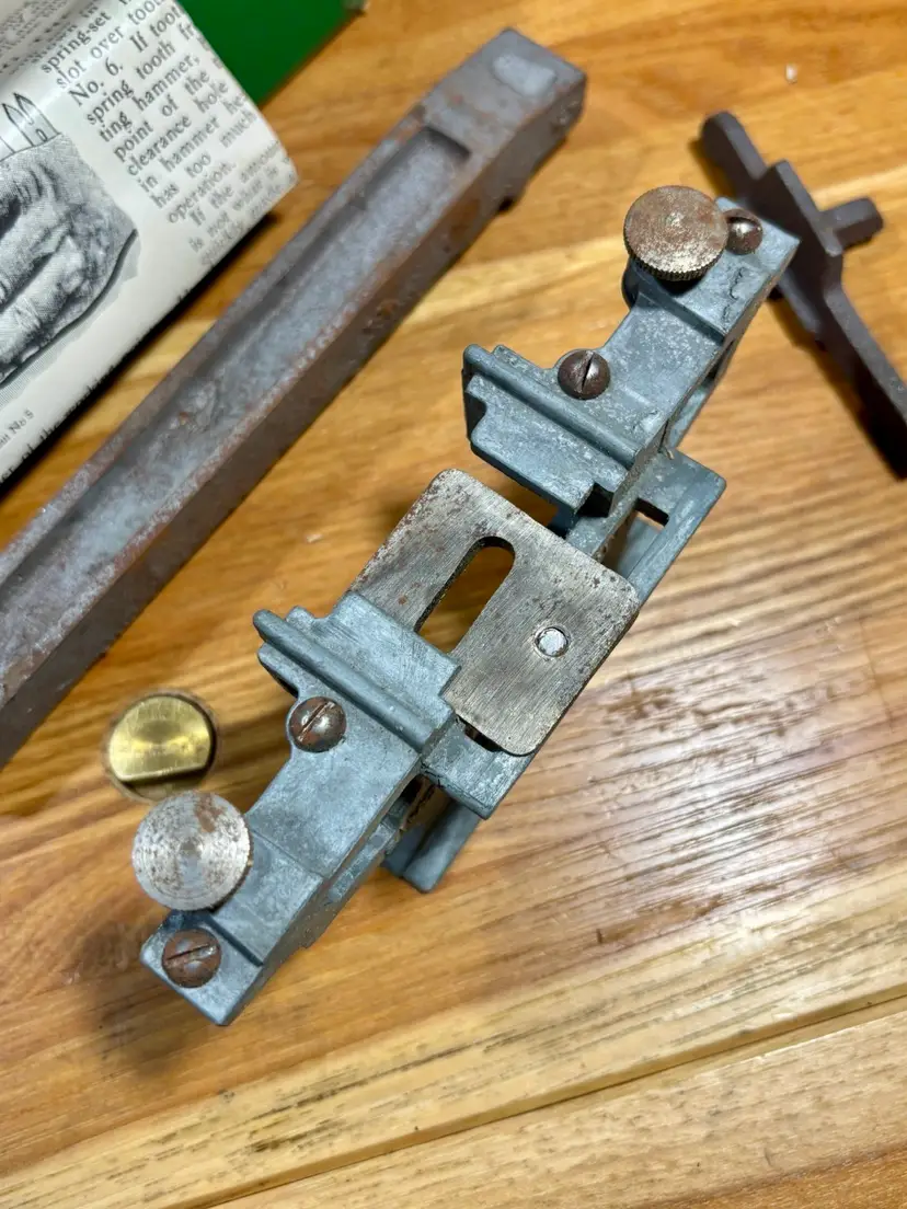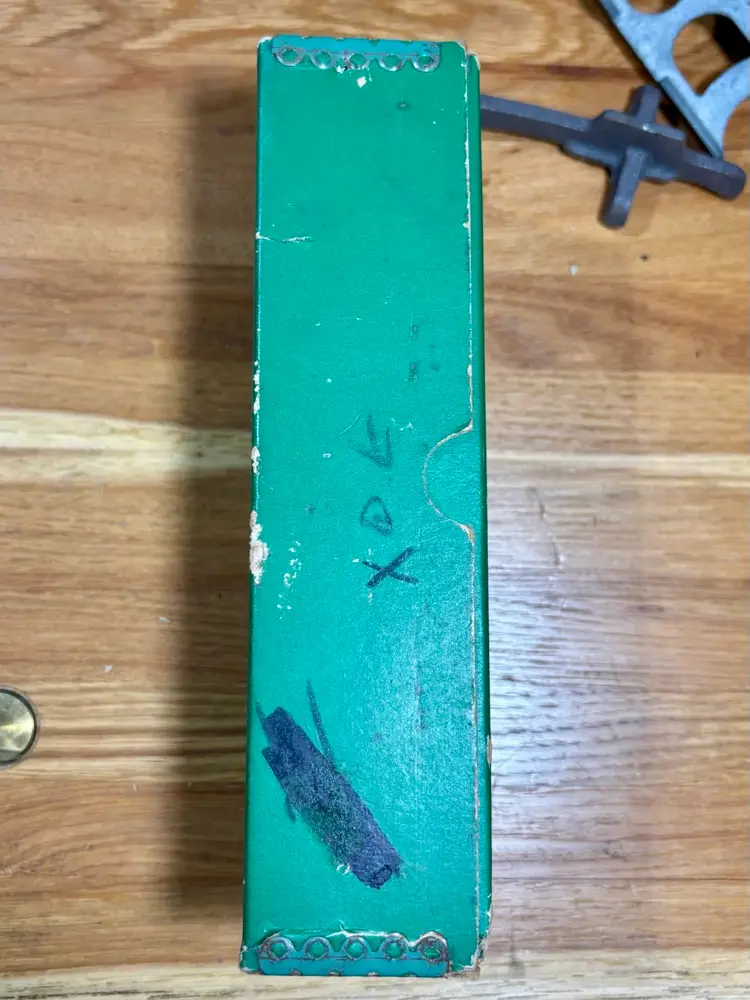 Excellent condition antique Simonds No. 340 Crescent Saw Sharpening Tools in box with instructions. No issues, complete kit for setting teeth on large buck saws, crescent saws, and other hand saws. Includes Raker gauge, teeth set stake, spider gauge and instructions with the original green box. The box is in good condition with complete labels on both ends. See pictures for details. Let me know if you have any questions.