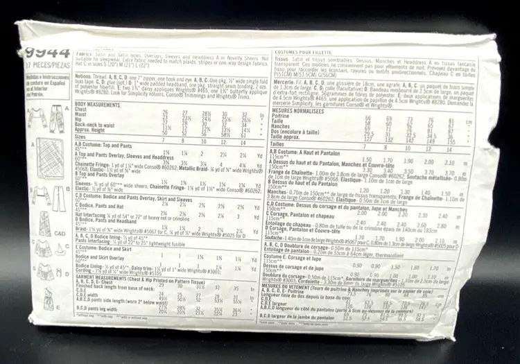 Returns Accepted: ReturnsNotAccepted Brand: Simplicity Type: Costume Cut/Uncut: Uncut Decade: 2000s Age Group: Child, Teen MPN: 9944 Gender: Girls Country/Region of Manufacture: United States Vintage (Y/N): Yes