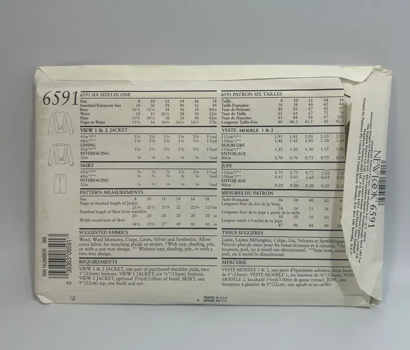 PLEASE READ: Sewing patterns will be looked over for major defects such as - Envelope issues, missing pieces, cutting layout intact etc. and will be noted. Sewing patterns could have wear due to use and age. Please enlarge all photos for overall condition and wear.