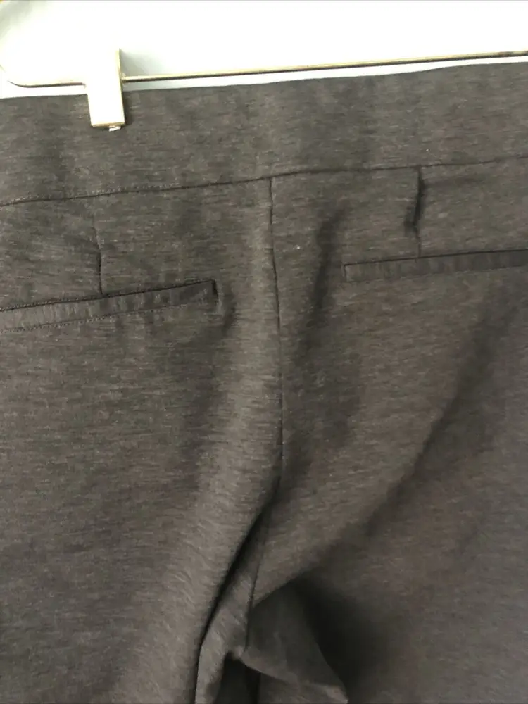 Pattern: Solid Closure: Button / Zip Occasion: Business, Casual, Party/Cocktail, Travel Size: XL Garment Care: Machine Washable Color: Gray Material: Polyester, Rayon, Spandex Front Type: Flat Front Fabric Type: Knit Accents: Button Vintage: No Rise: Mid (9 in) Fit: Regular Brand: Simply Vera Vera Wang Size Type: Regular Department: Women Type: Pants Style: Dress Pants Theme: Vera Wang Features: Comfort, Elastic Waist, Stretch