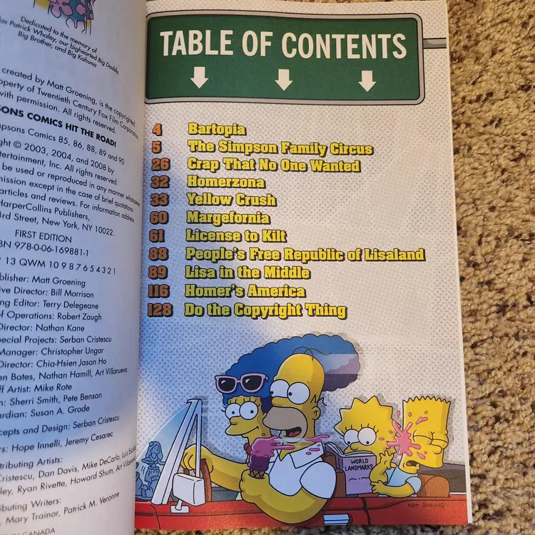 Join the Simpsons family on a wild road trip adventure with 'Simpsons Comics: Hit the Road!' This comic book is packed with laughs and hijinks as Homer, Marge, Bart, Lisa, and Maggie hit the open road. A must-have for any Simpsons fan!