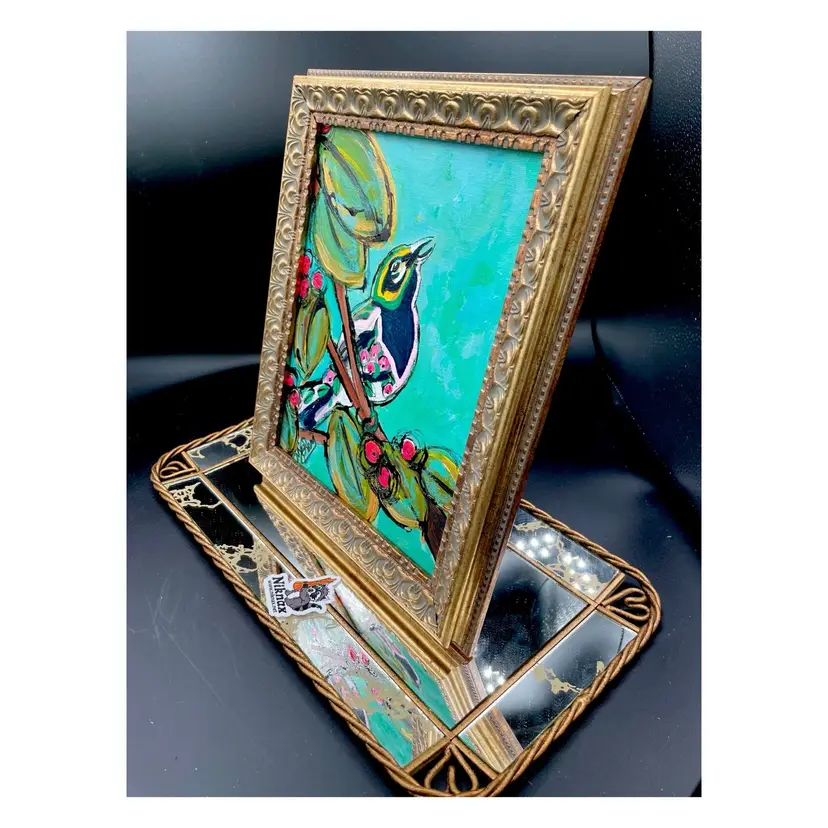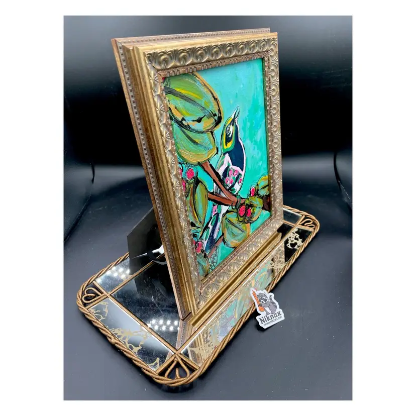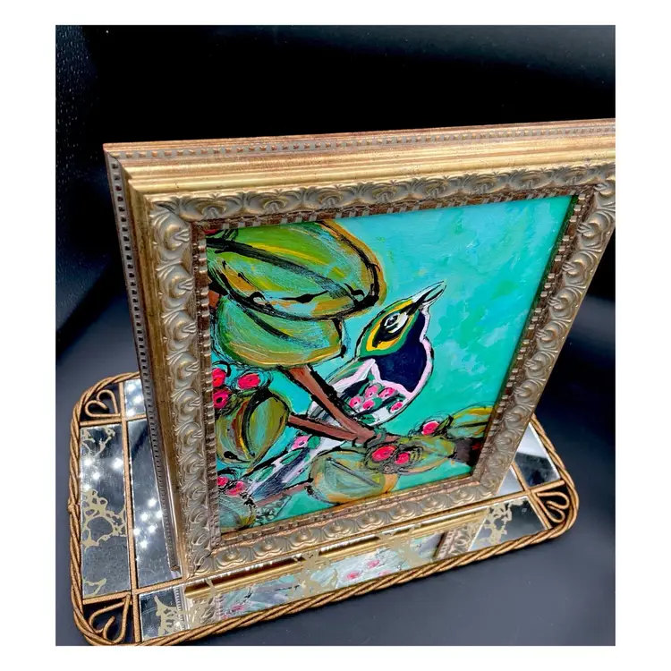 New original bird painting on 8”x10” canvas board in 10”x12” new frame. No glass. #1158