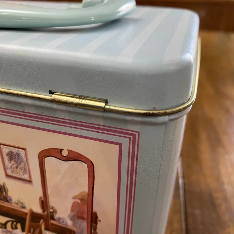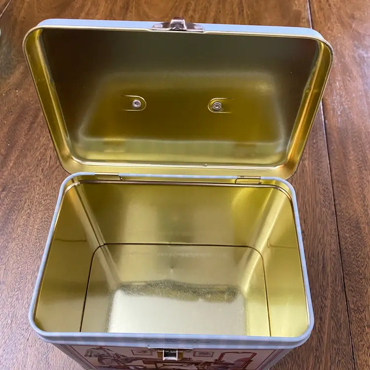 Size: about 6” x 6” x 4” Material: metal Condition: pre-loved vintage. It has a few tiny dents and some mild patina along the exposed metal rims, few light scratches. Overall really nice for the age! Please see photos as it is part of my description.